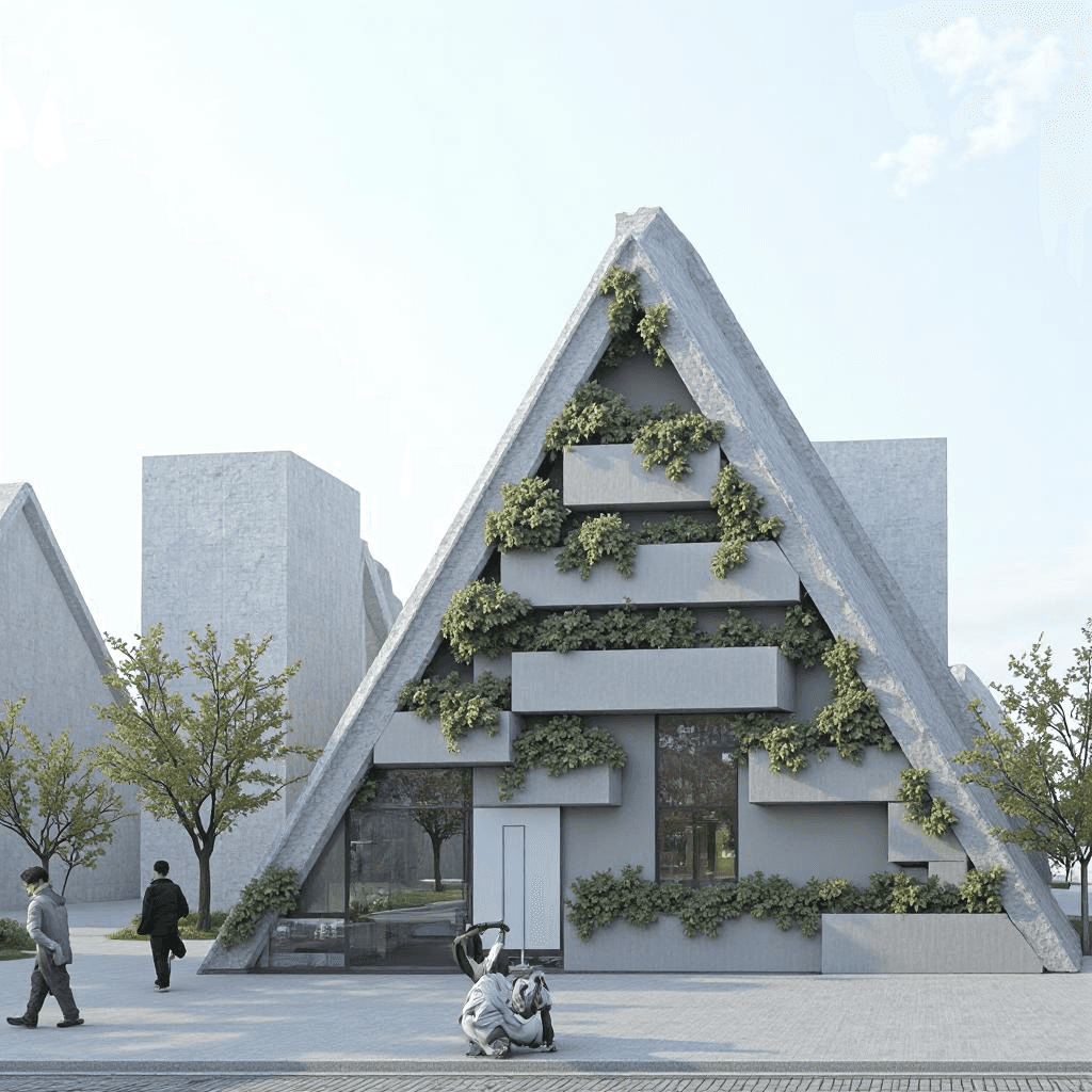Small scale family homes. triangular and pyramid shaped for maximum spatial and structural efficiency, as well as ease of construction.
