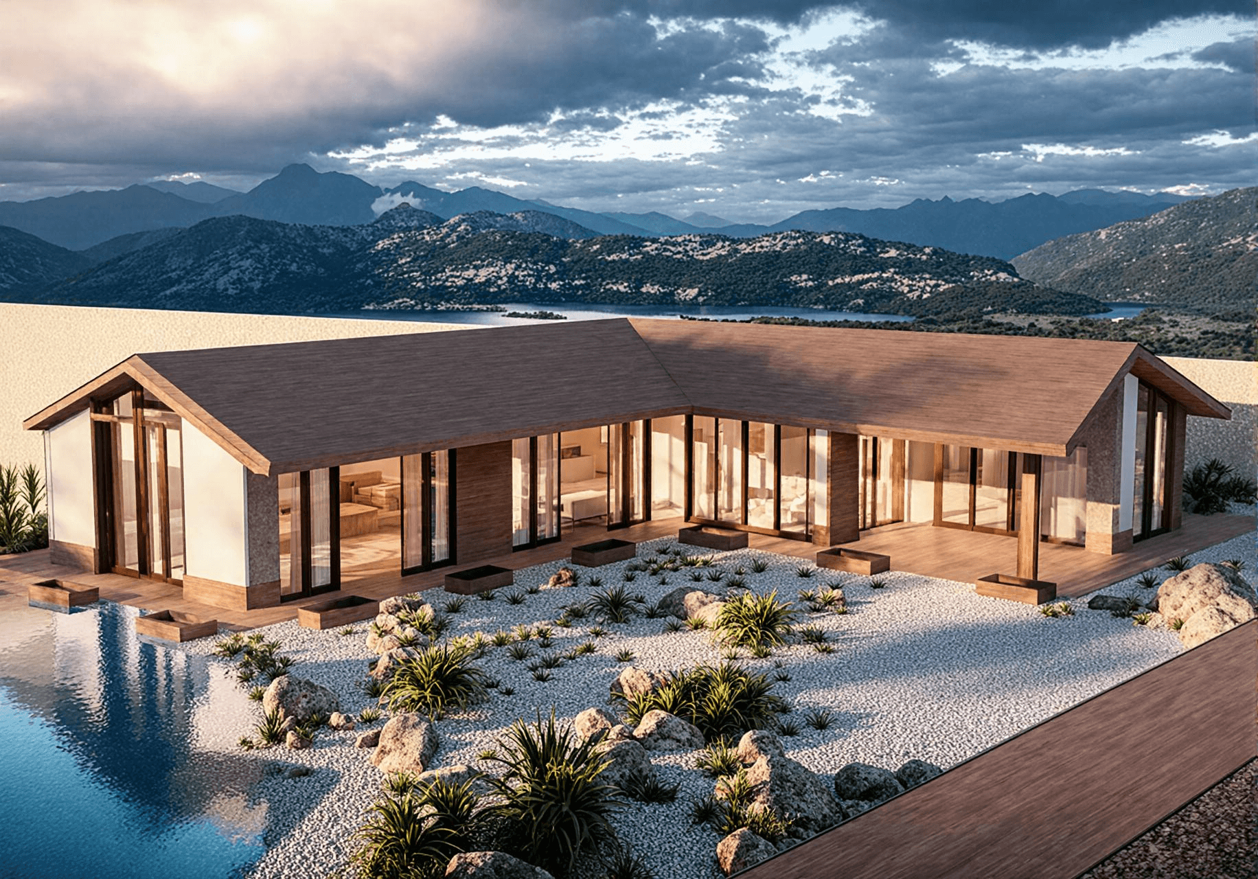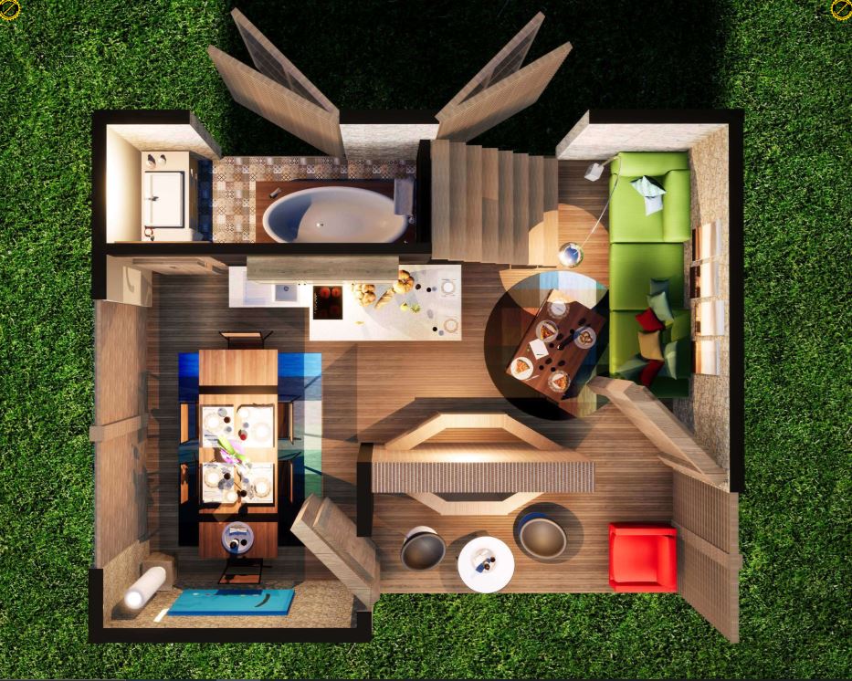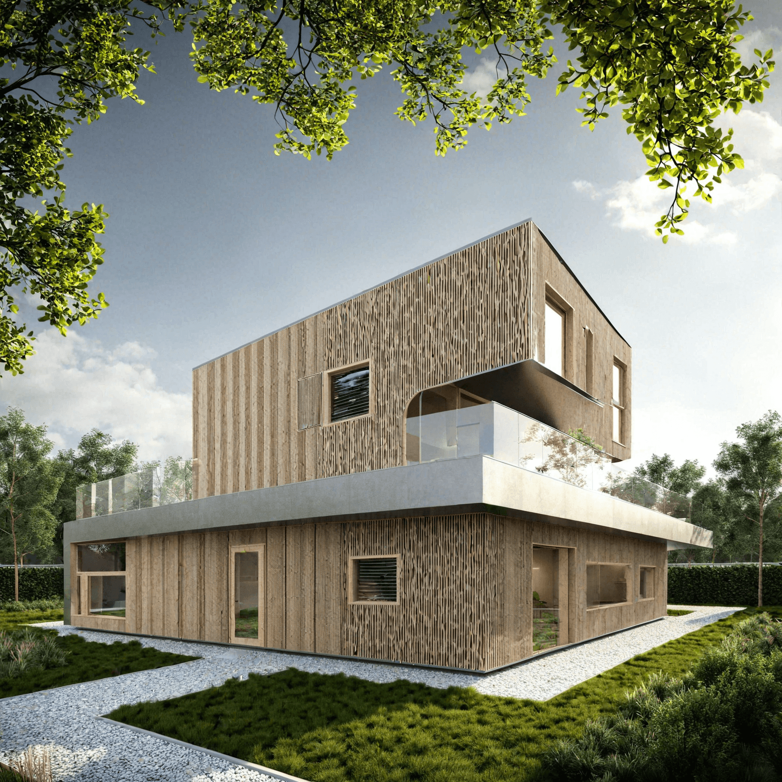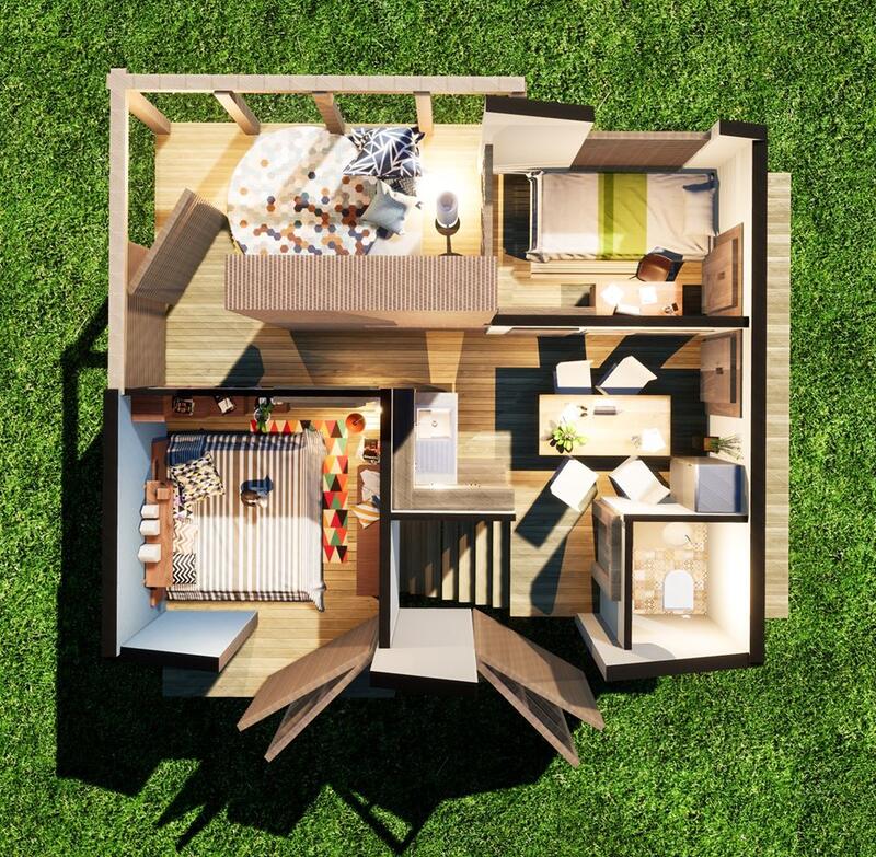 Small scale family homes. Rectangular floor plan for maximum ease of construction and expandability, multiple floor arrangements and modularity.