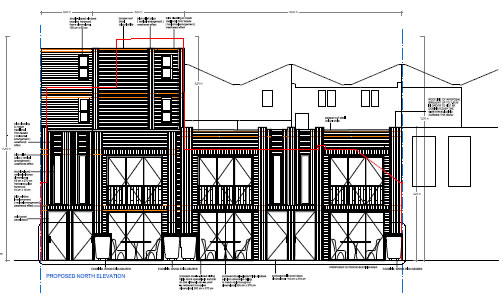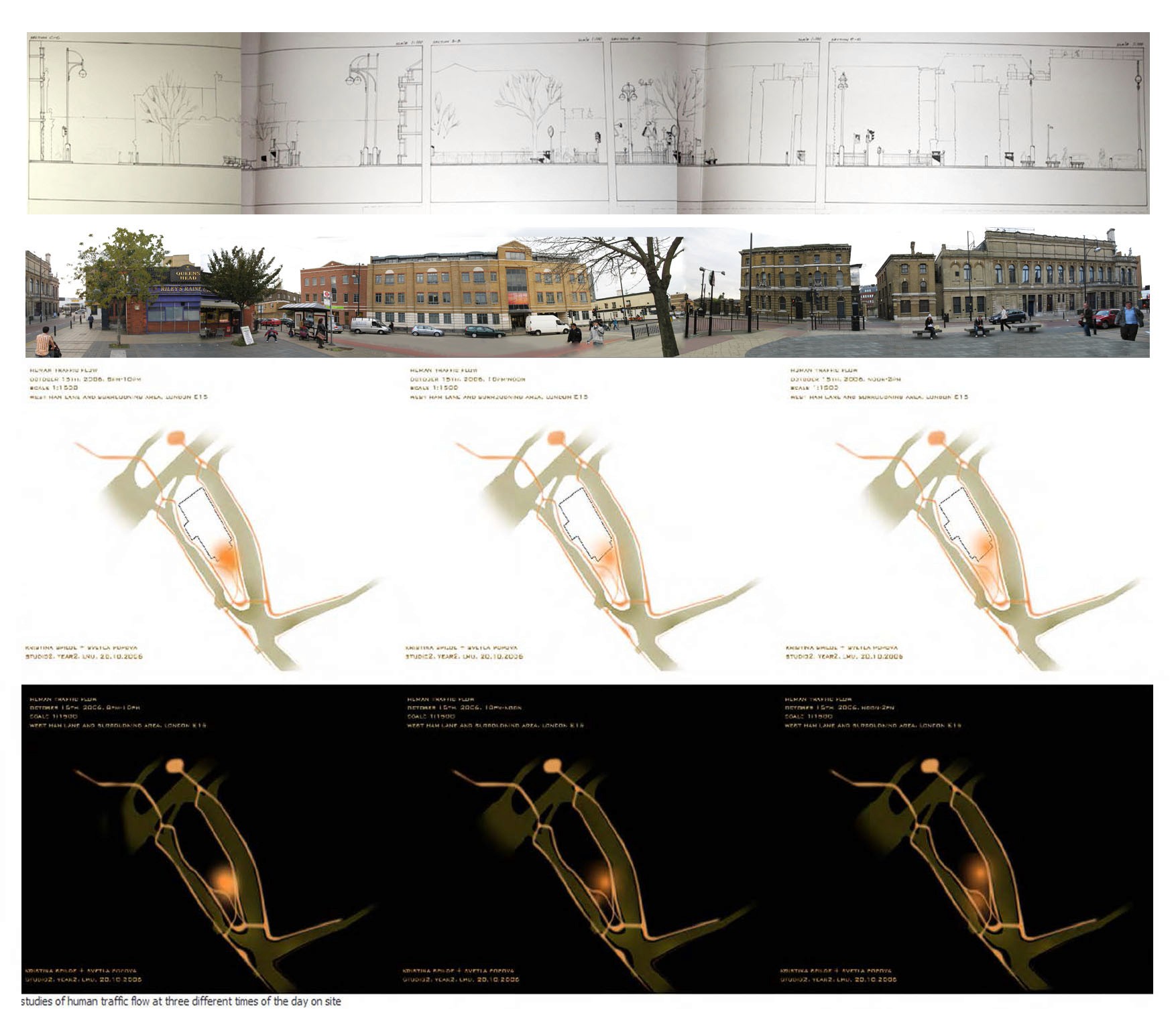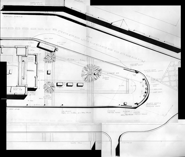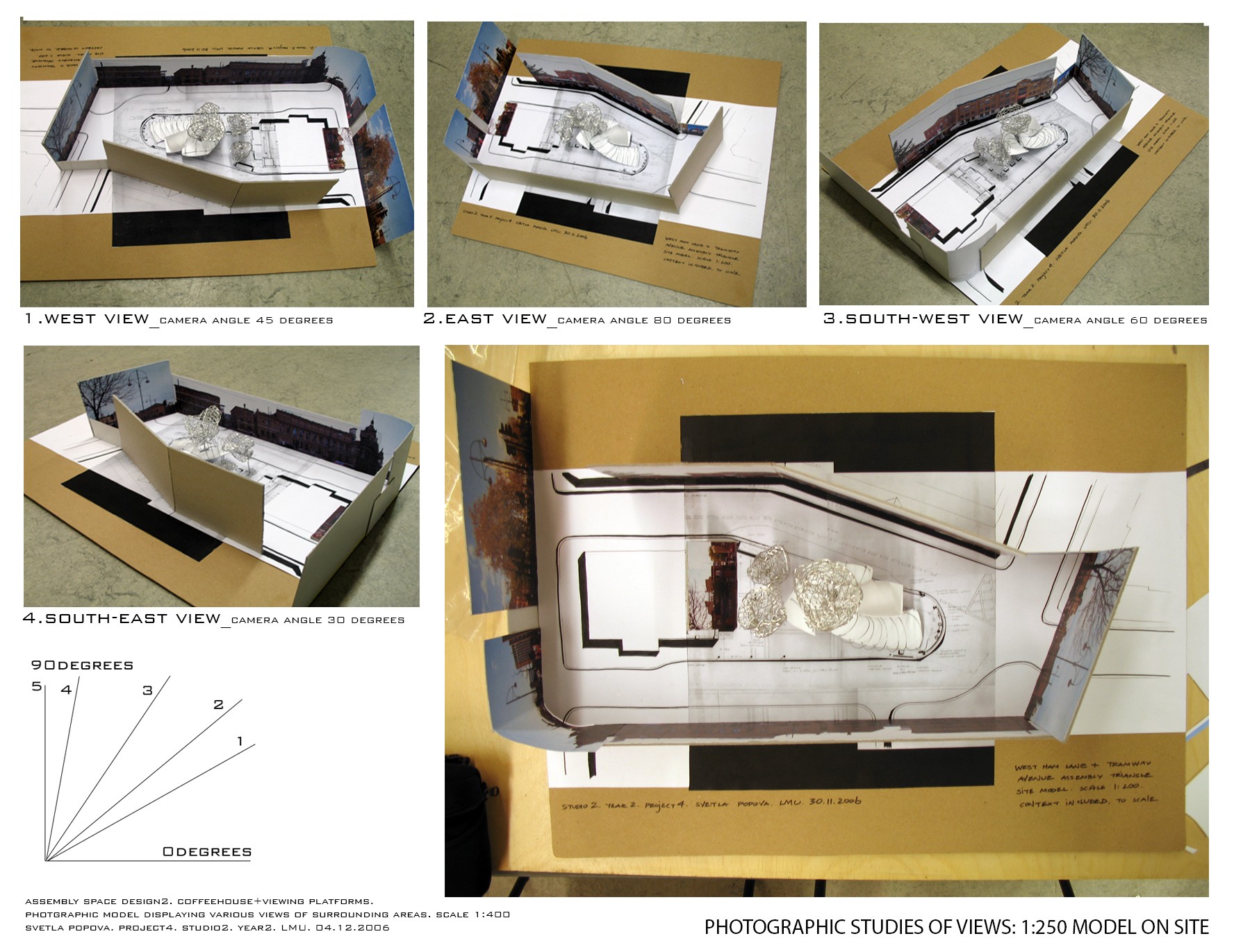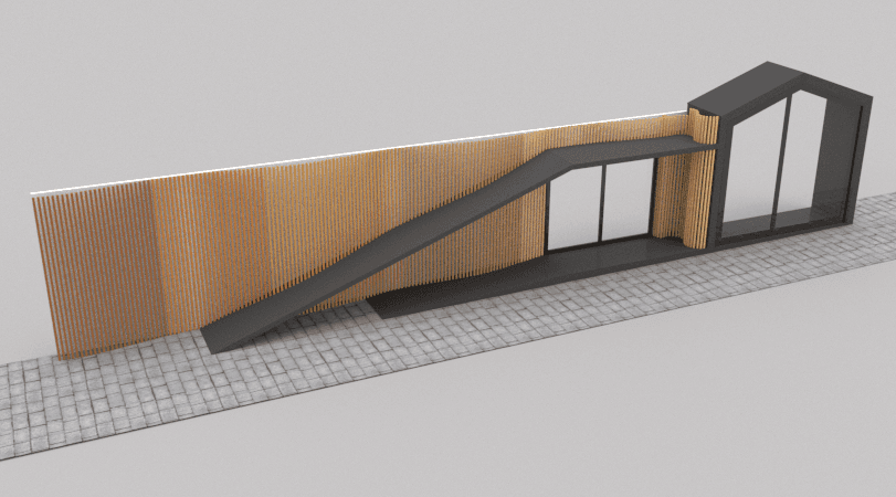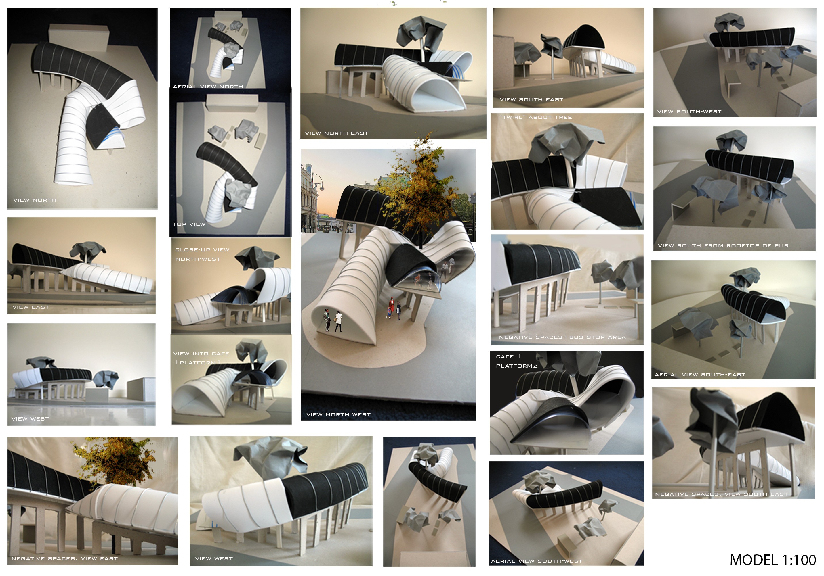 A freestanding elevated cafe on Golbourne Road, London. The cafe is placed on pillars and accessile via various ramps, thus not interfering with the road traffic below, and allowing for city views.
