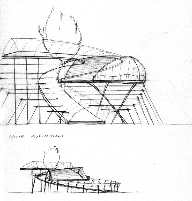 A freestanding contemporary art gallery and performance center in Seoul, South Korea. The building stands in the water for symbolic purposes and also for using the river flow for energy generation. It offers panoramic views into the landscape.