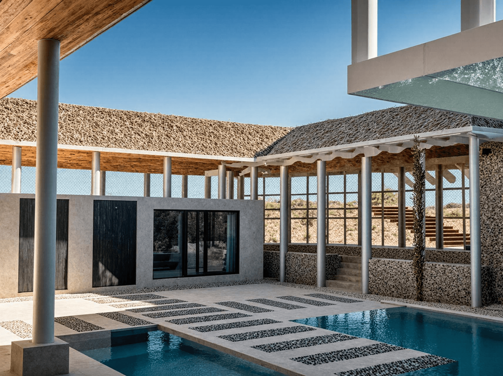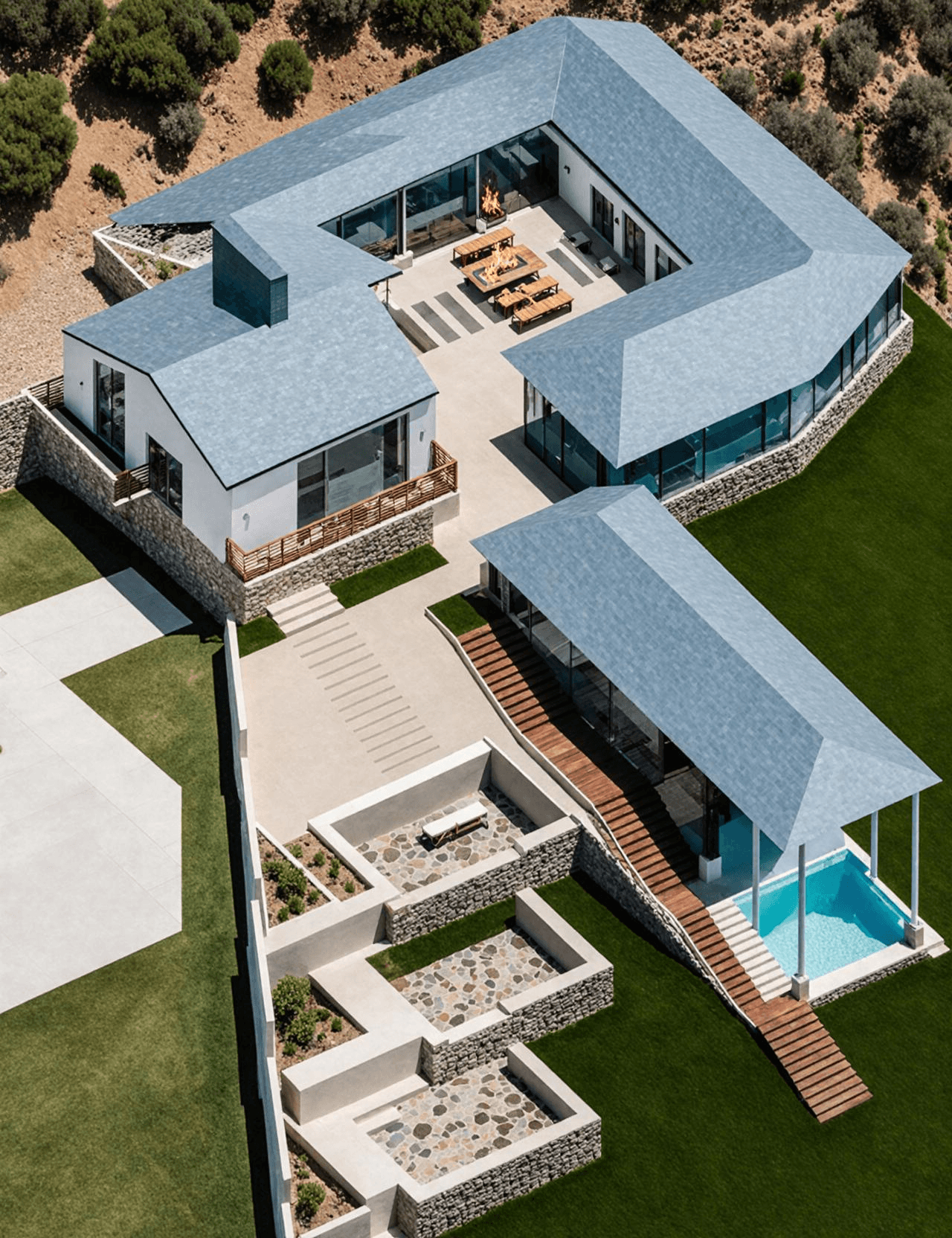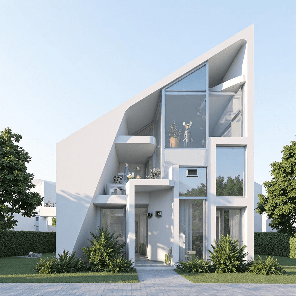 An innovative proposal for an eco house which is transportable, expands to double its size and uses a combination of fully reused upscaled waste materials (turned into triangular building blocks), artificial intelligence and nanotechnologies simply, affordably and efficiently to achieve an end product of at least 50% the current construction cost, while maintaining the comfort and happiness home factor. Not only that - it can adjust itself in size and volume according to the occupier's needs and site context.
