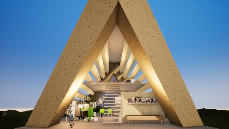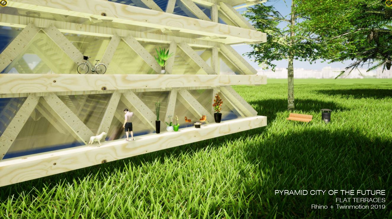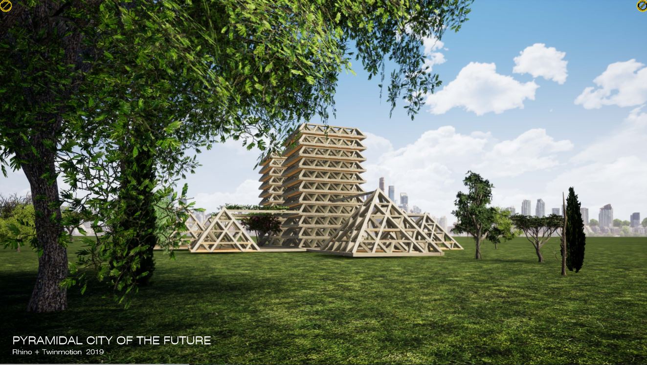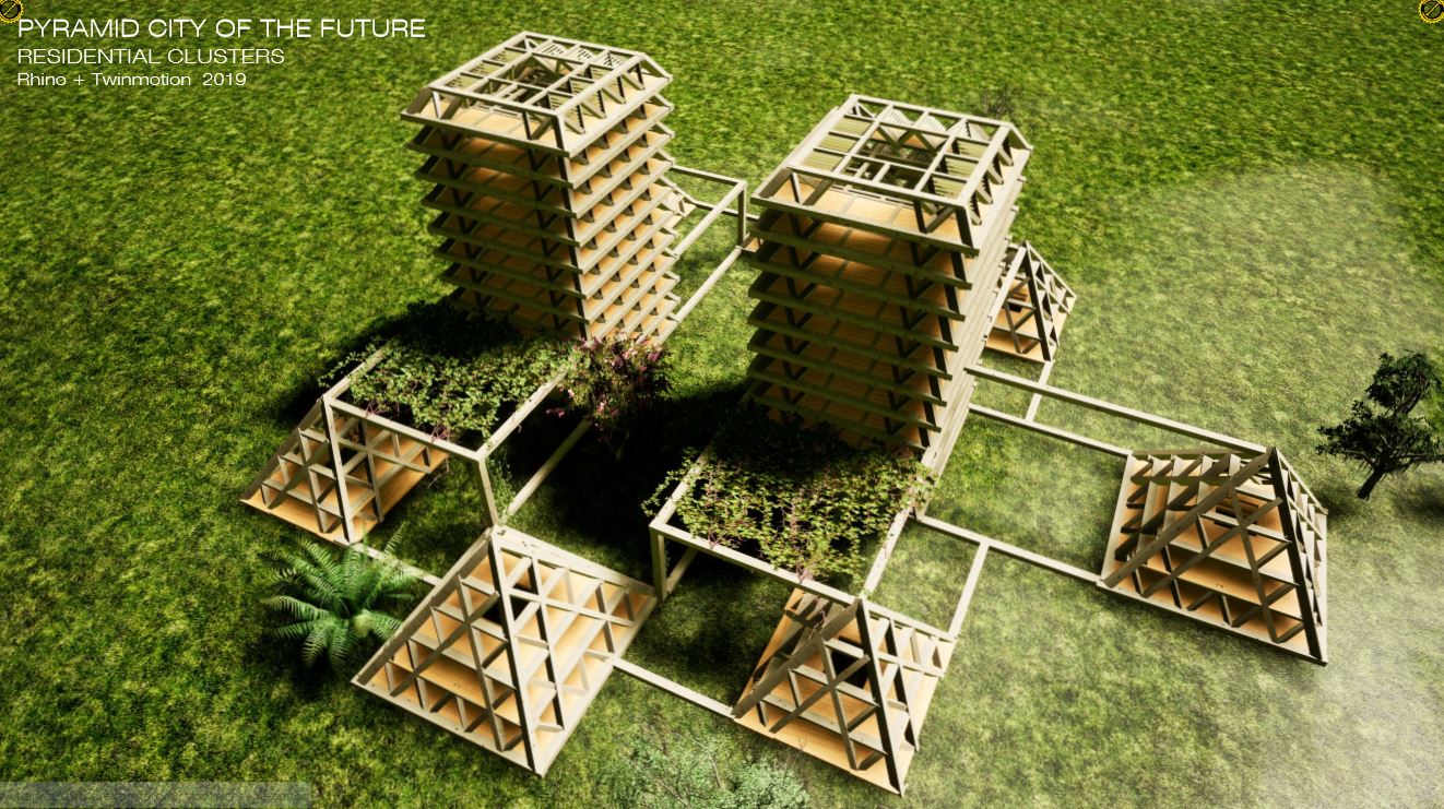 A vision of a future city habitat composed of isosceles quadrilateral pyramids. Fully recycled natural materials with zero cabron footprint - timber and locally sourced wood.