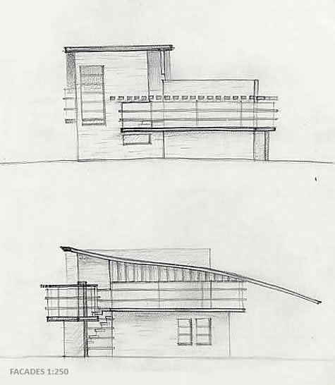 A summer recreational villa in Woodstock, upstate New York. The building is made of reused and recycled natural materials, such as pine wood and oak. It presents a contemporary vision of a small summer house, presented only via sketching and a wooden physical model.