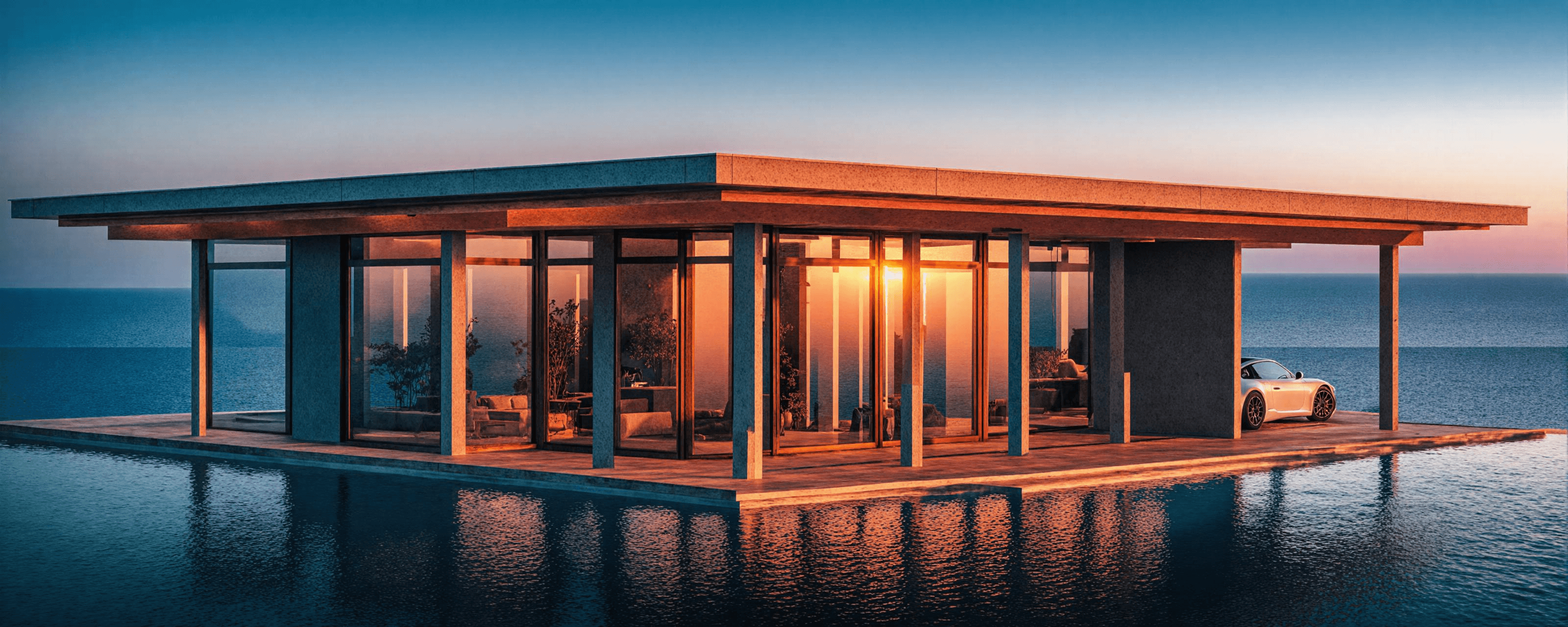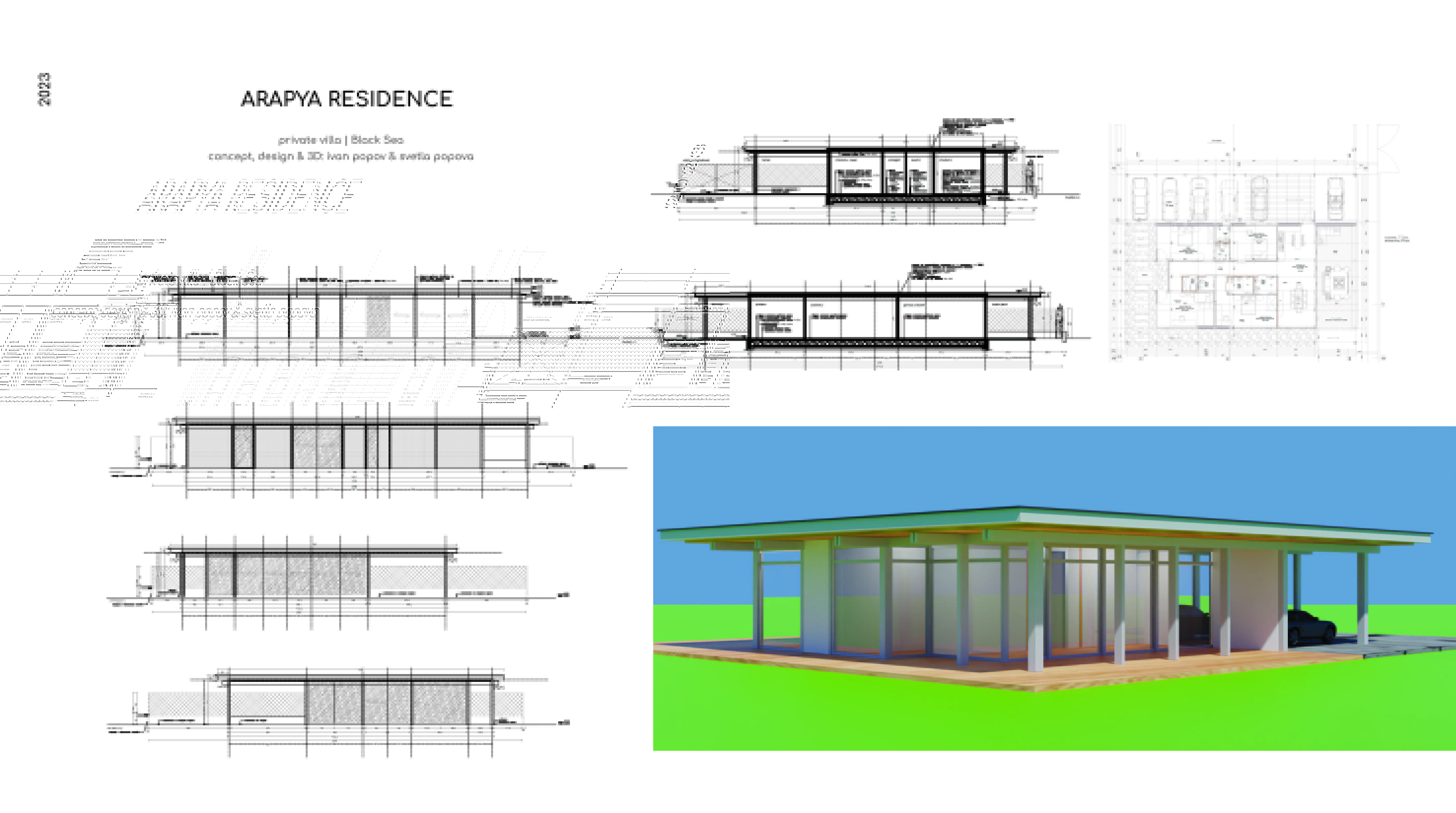 A summer residence on the Black Sea coast in Arapya resort, South-east Bulgaria. The design is minimalist and inspired by the Germany Huf house concept. It is located in natural settings and takes into consideration the spectacular views into the Black Sea Arapya bay. Materials: reclaimed timber, recycled metals and glass.