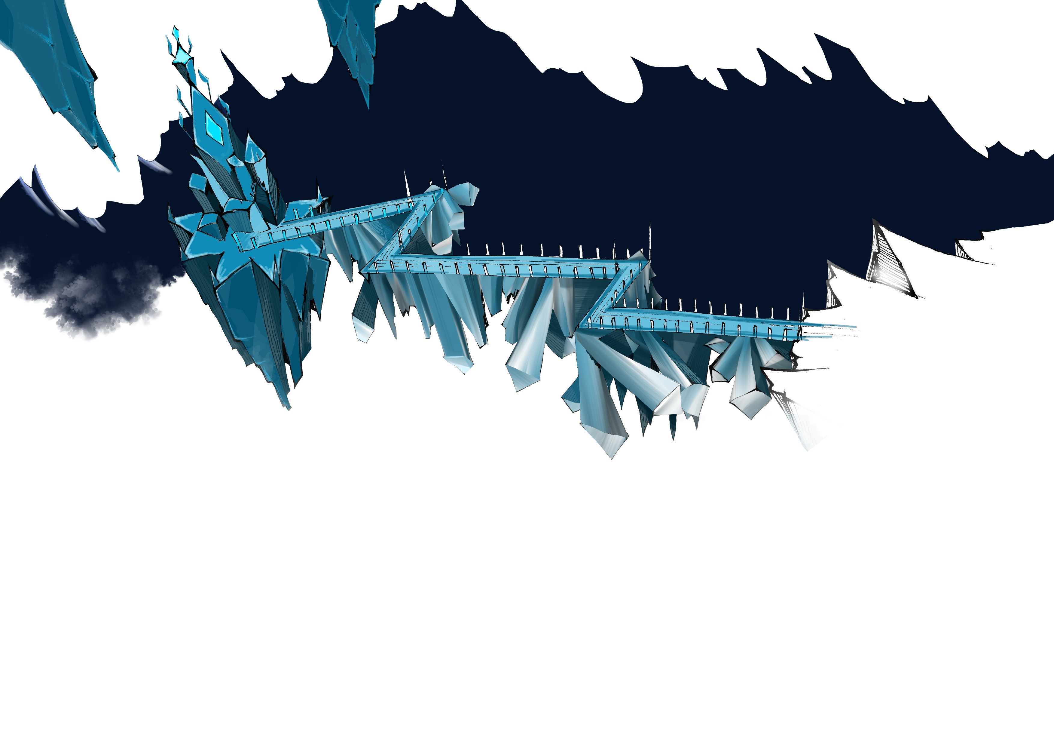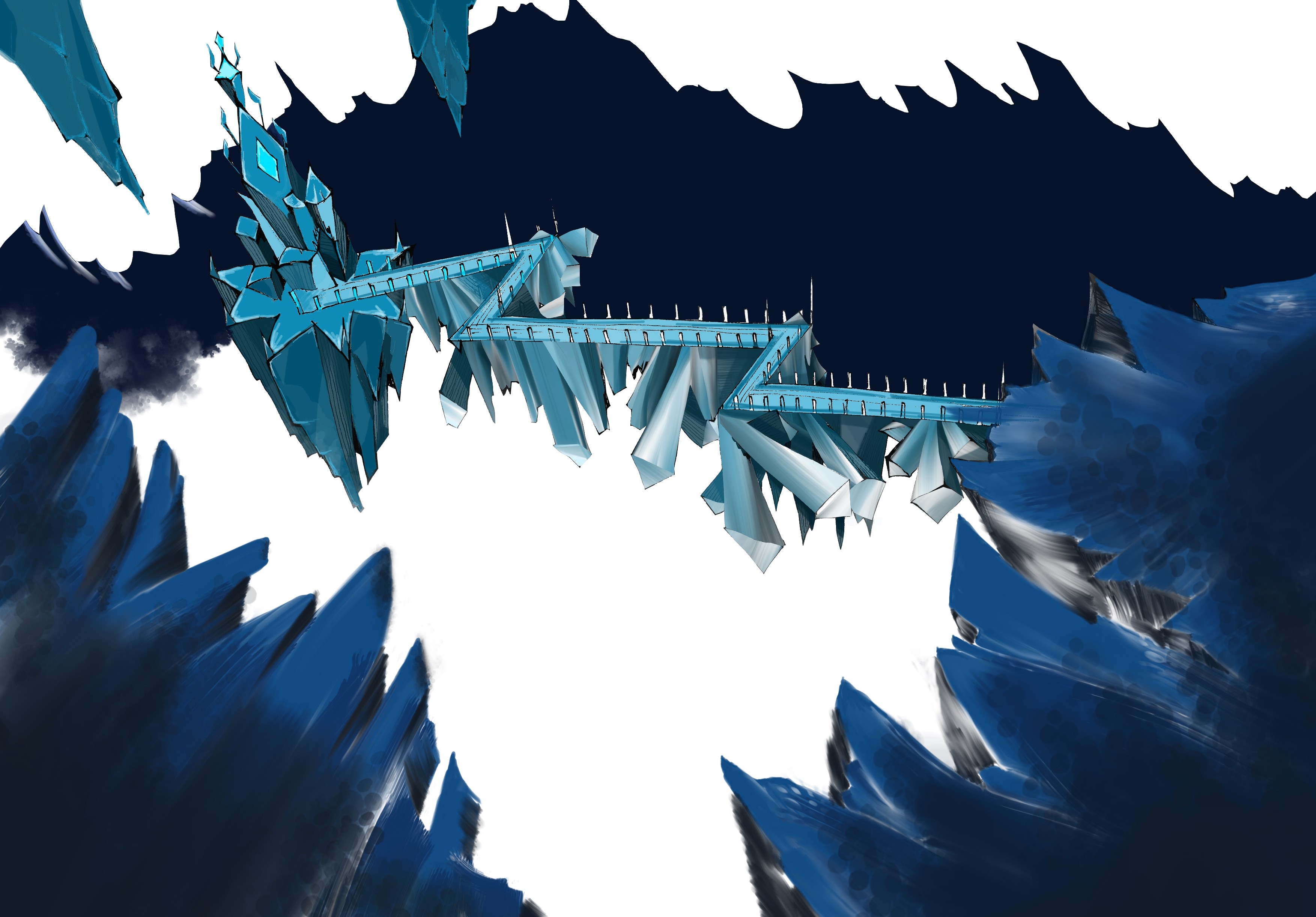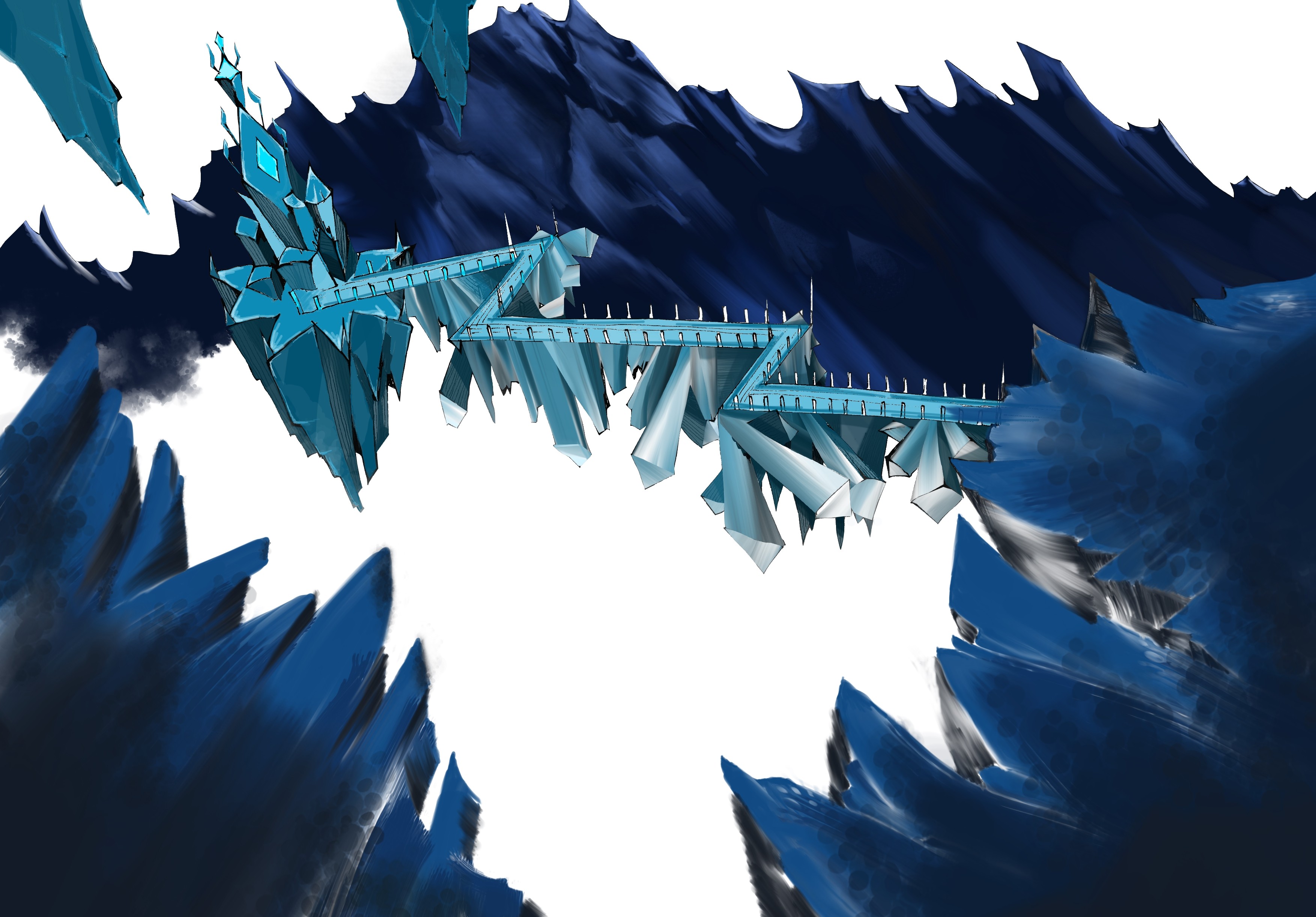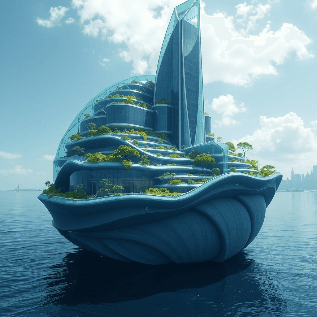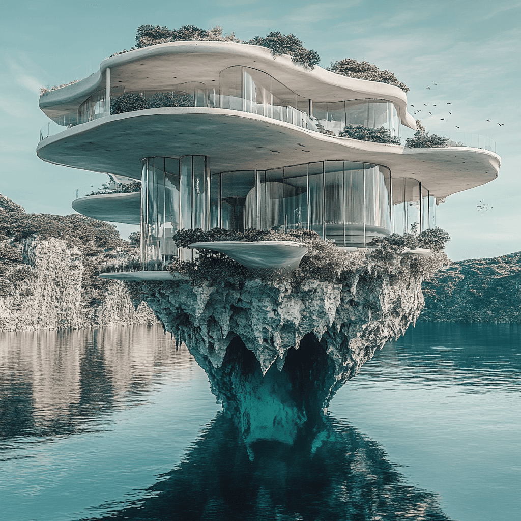 Ocean buildings built from and inside iceberg formations.