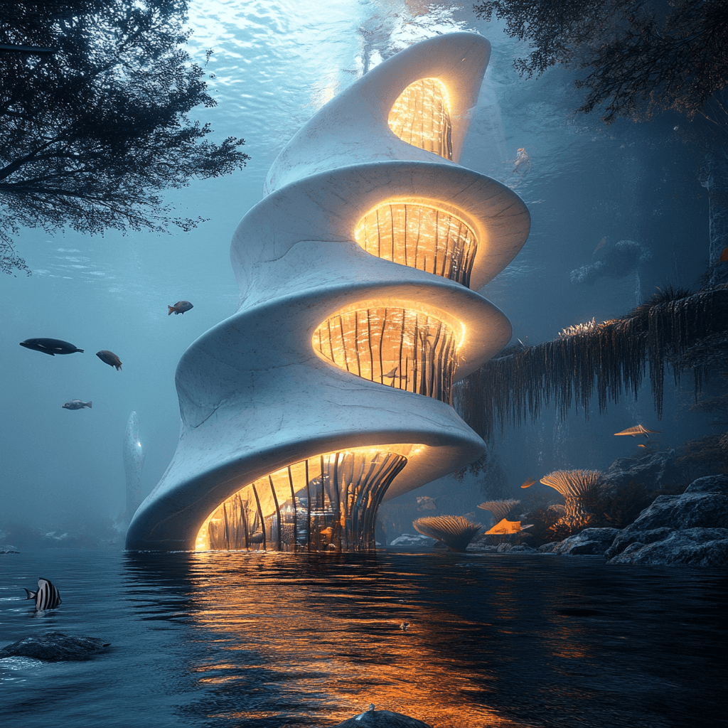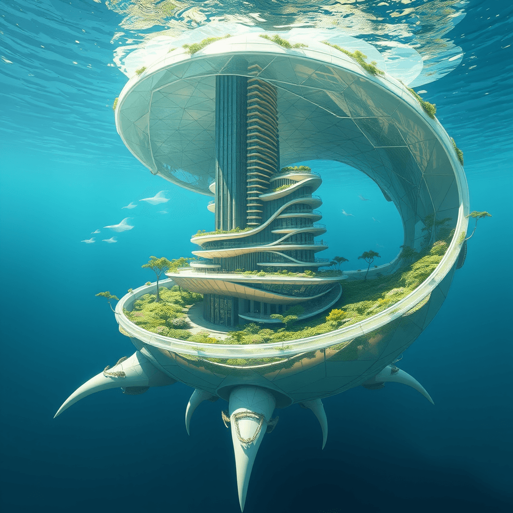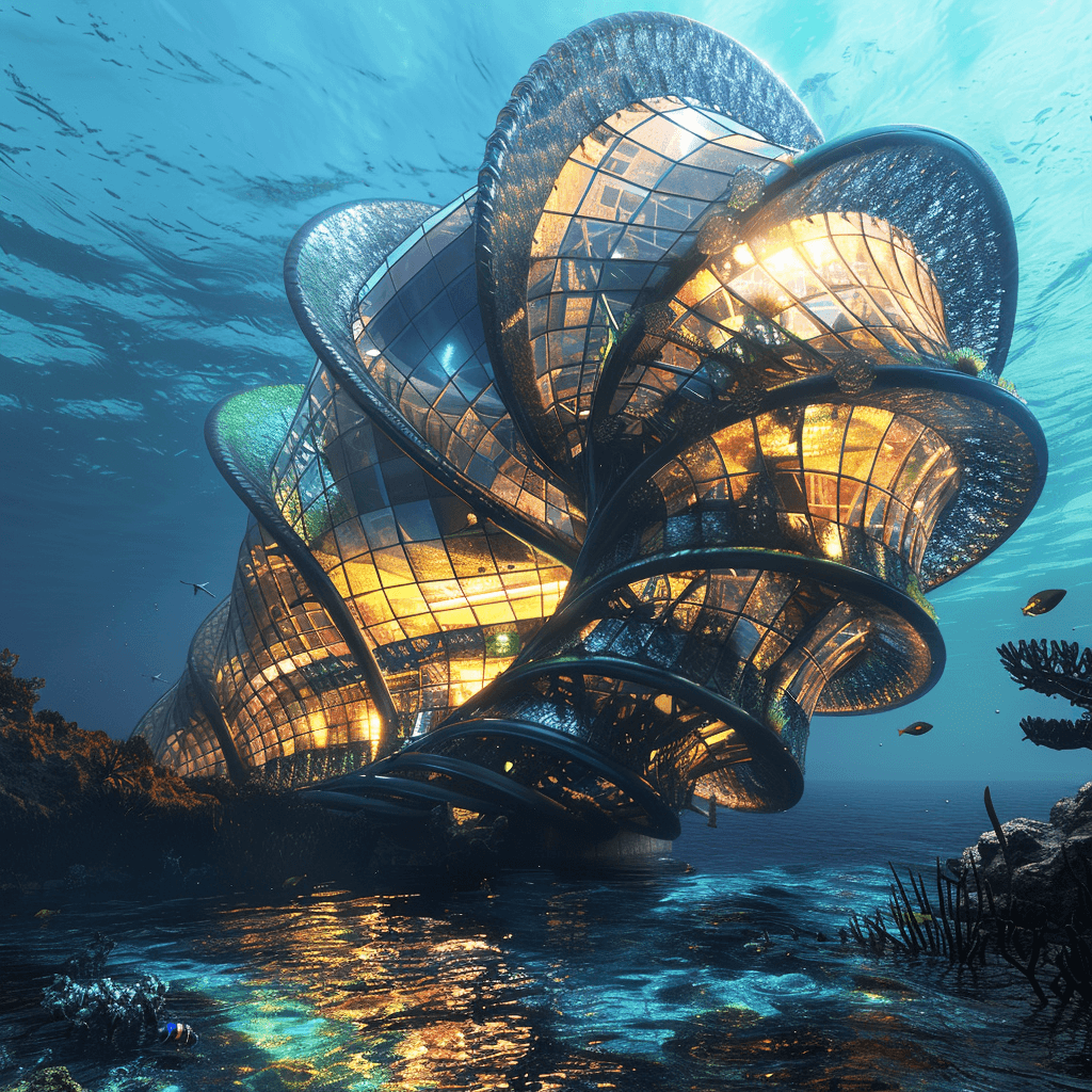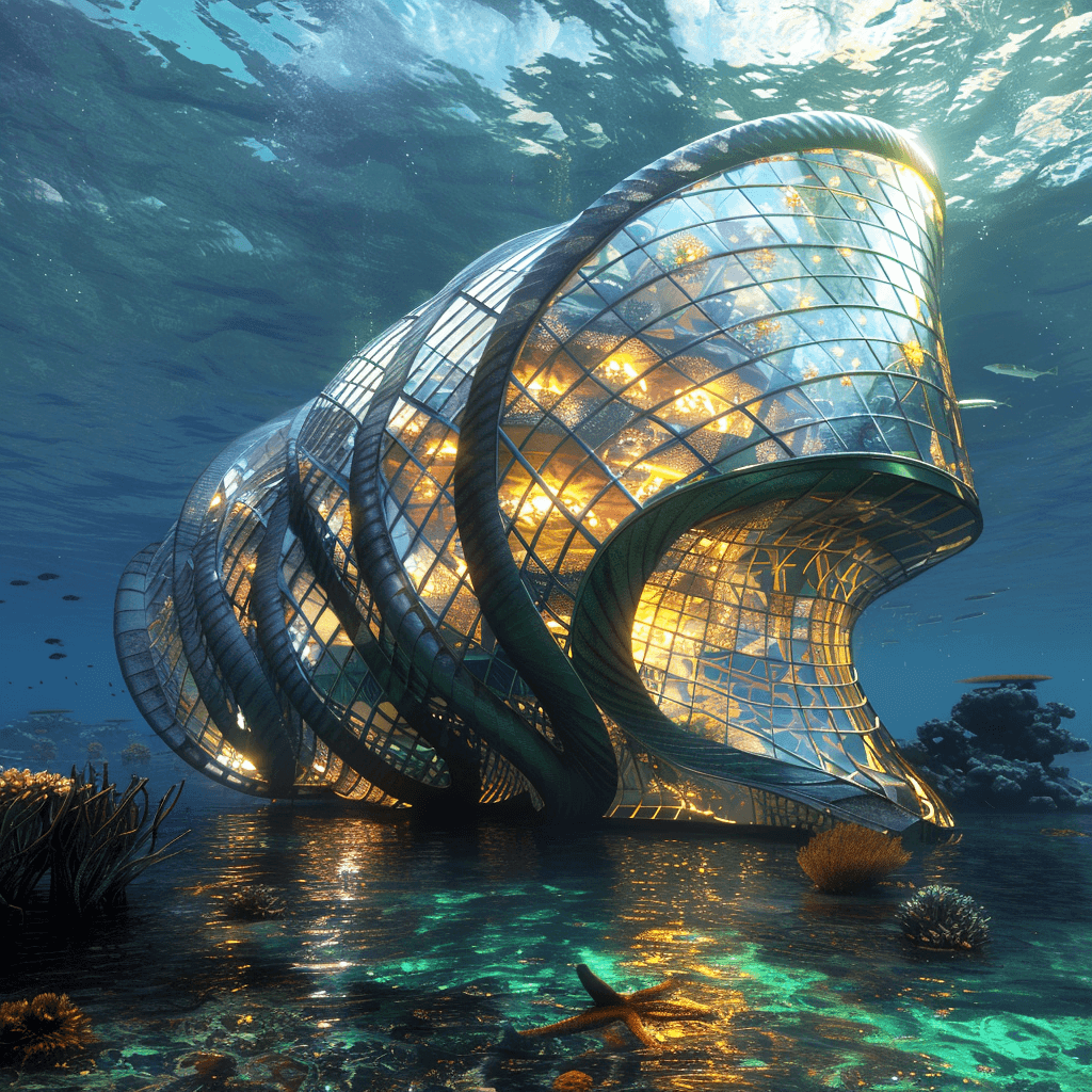 An underwater house whose structural components are inspired by the legs of a brittle star.