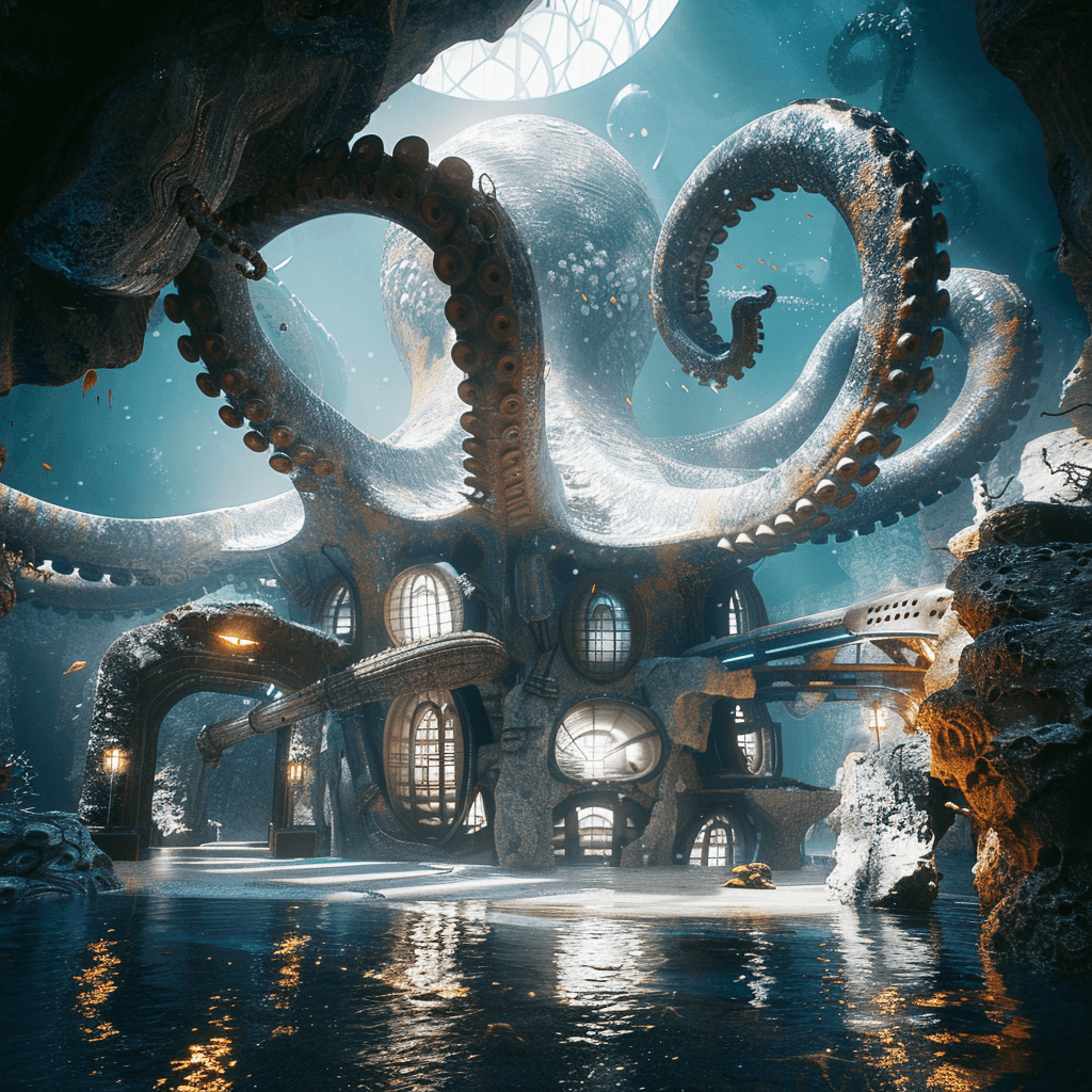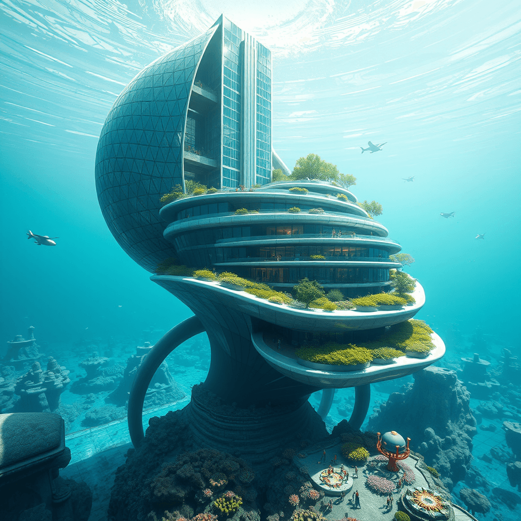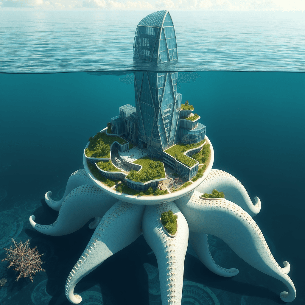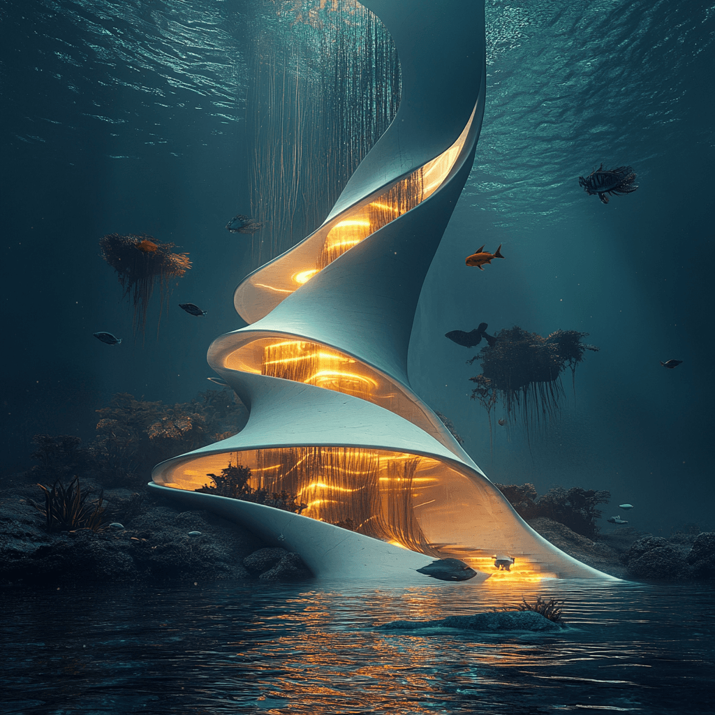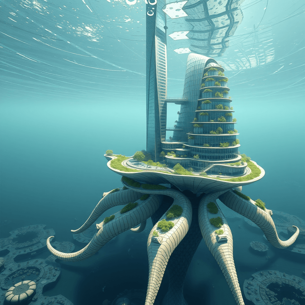 An underwater house whose structural components are inspired by the legs of a brittle star.