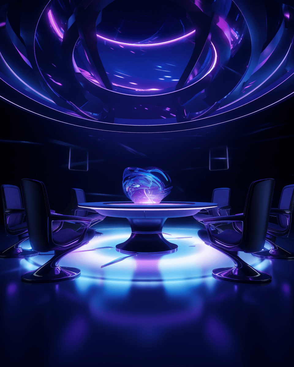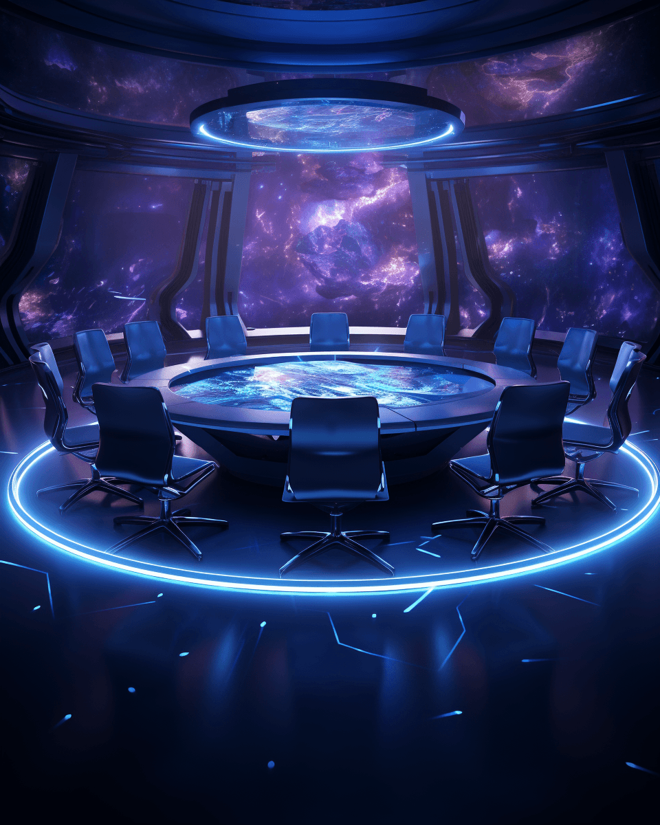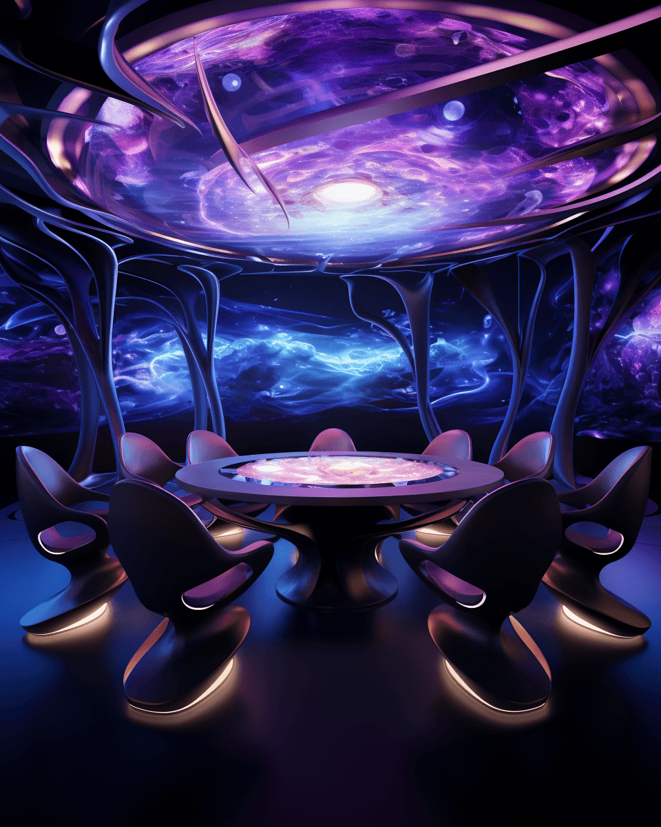 Sci-Fi outergalactic meeting room defying gravity.