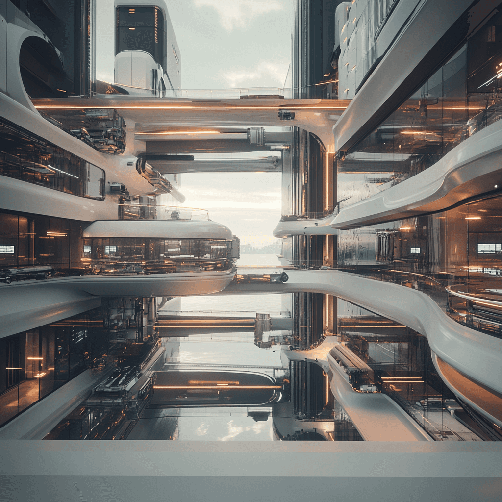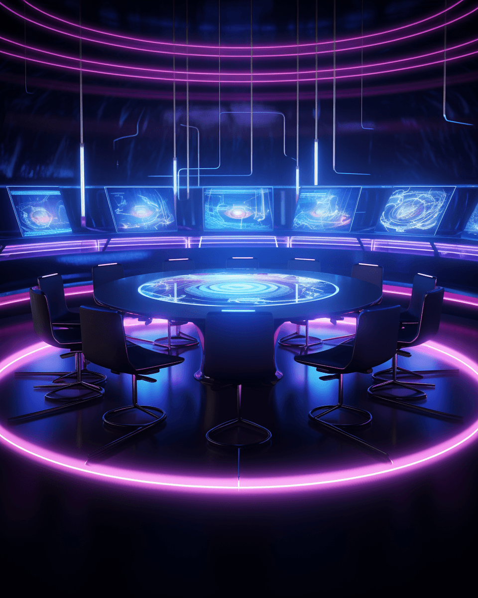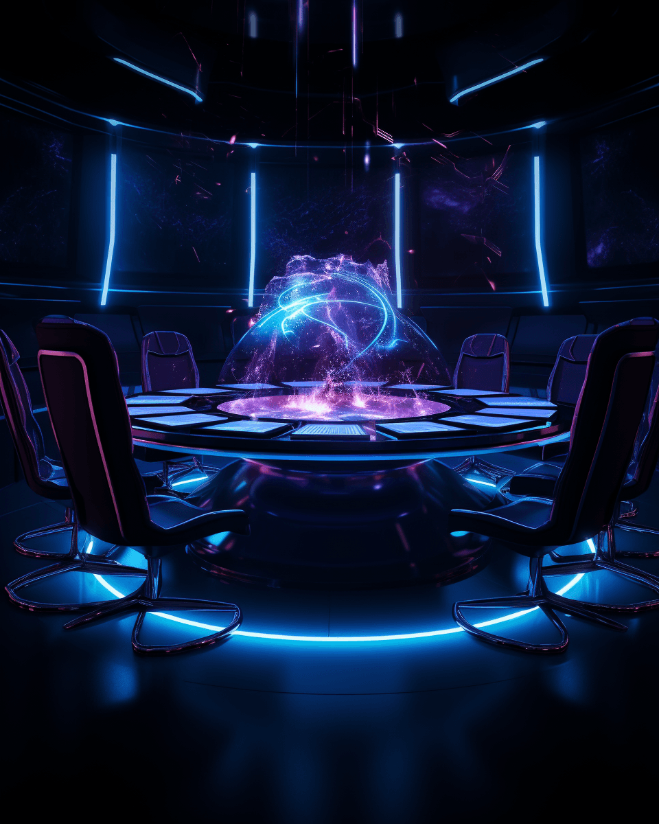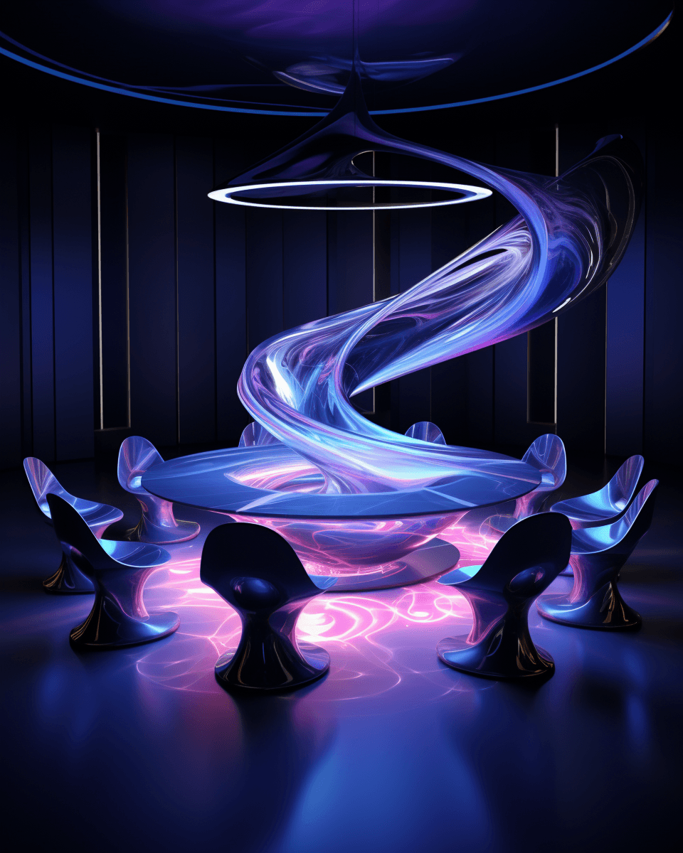 Sci-Fi outergalactic meeting room defying gravity.