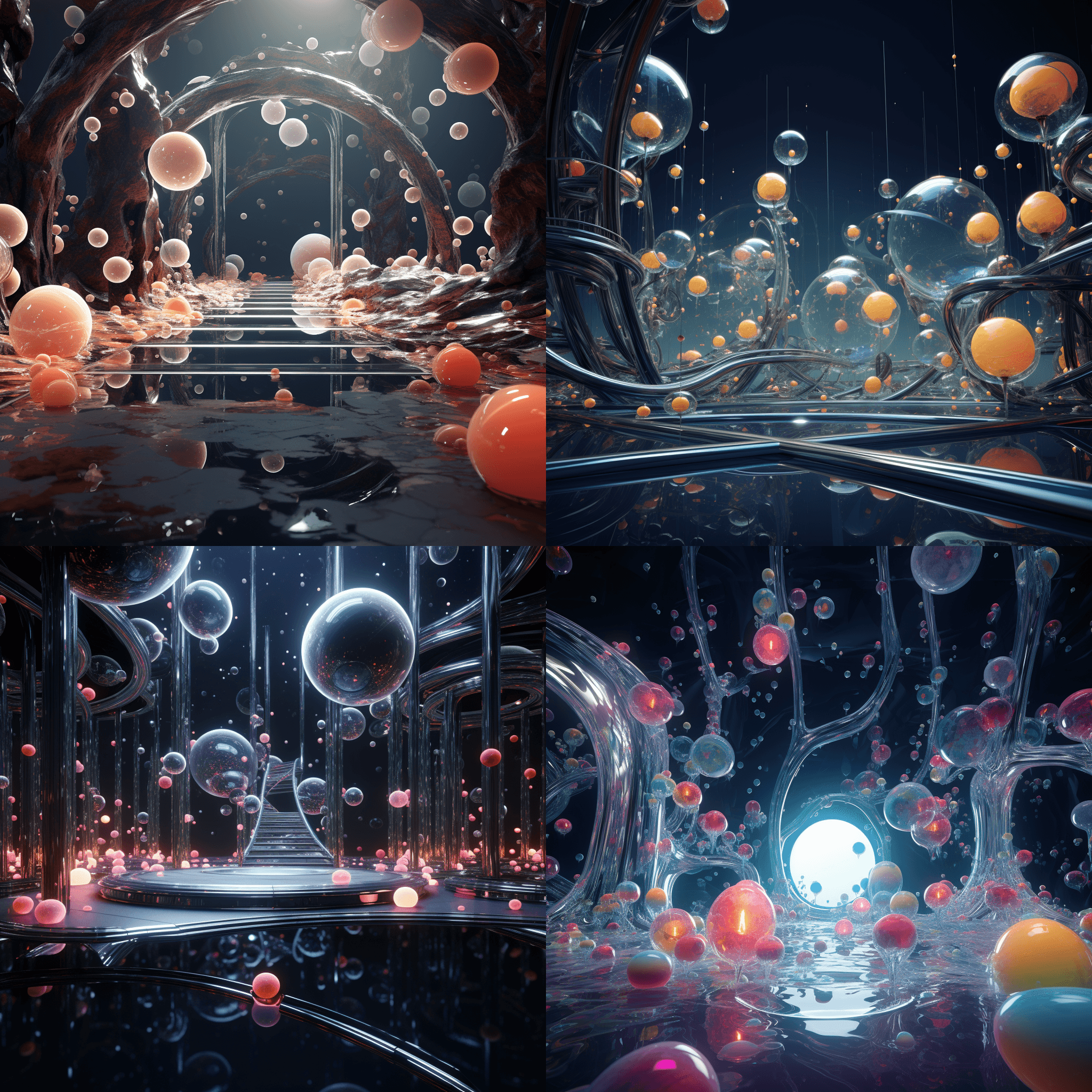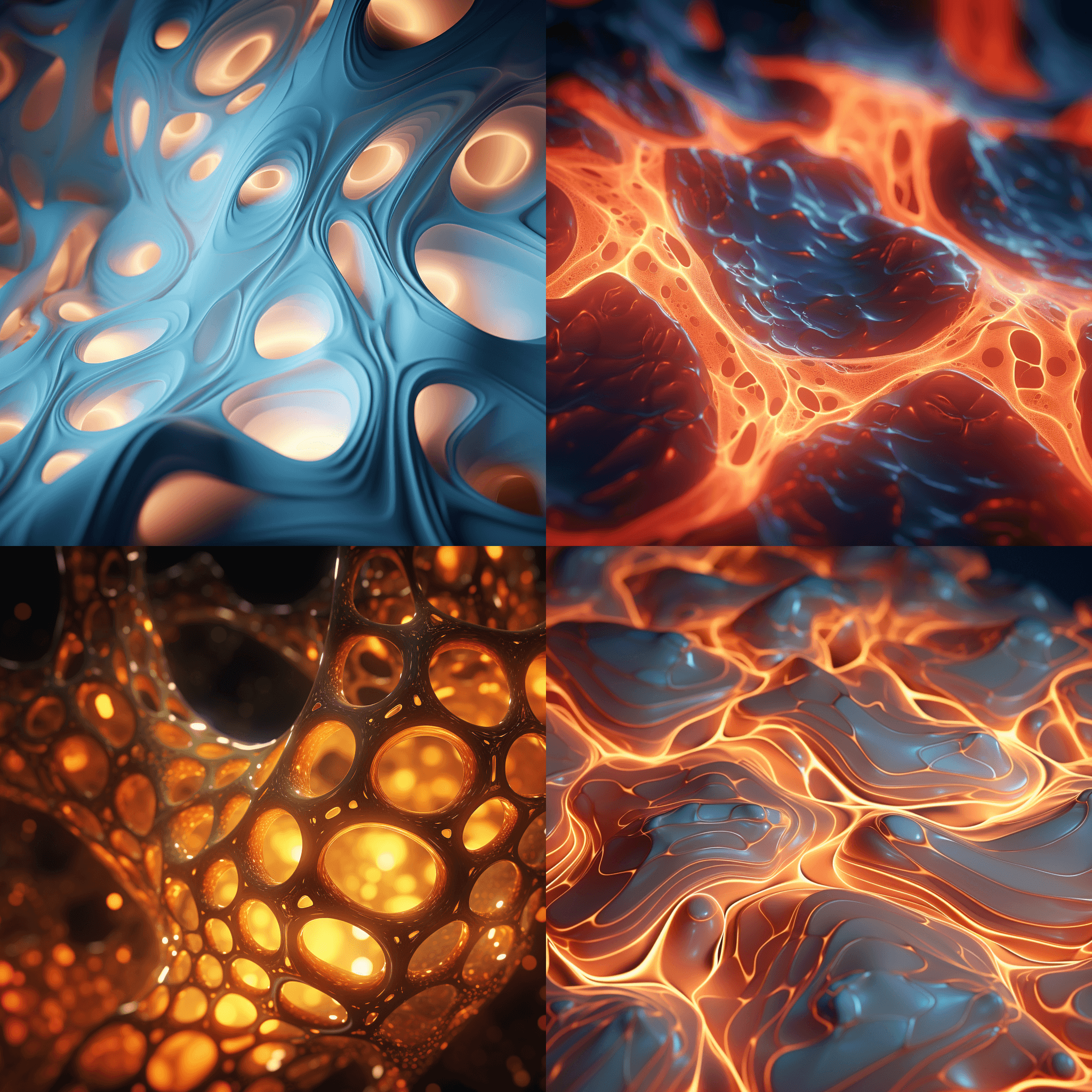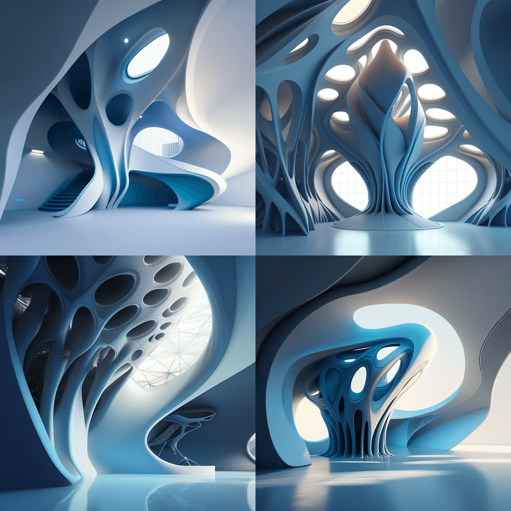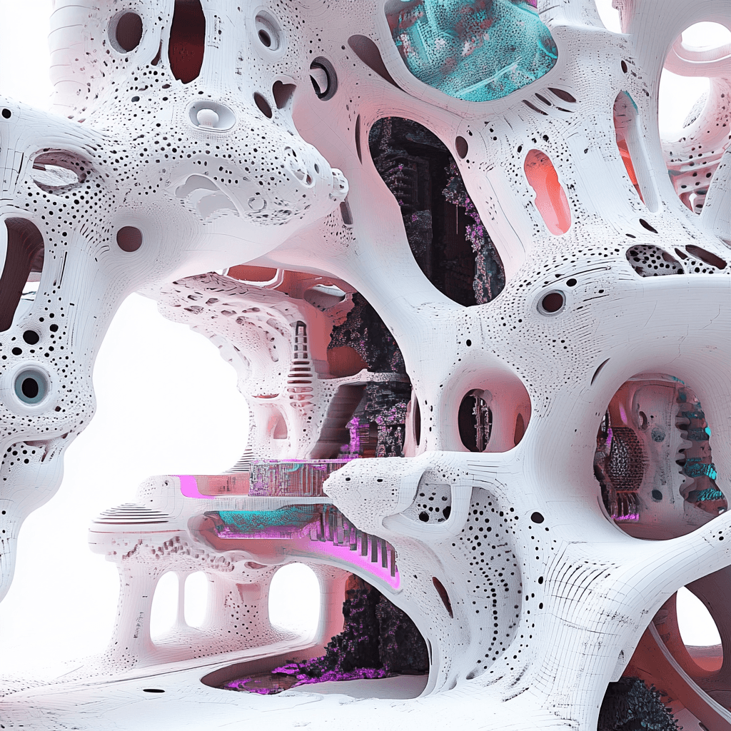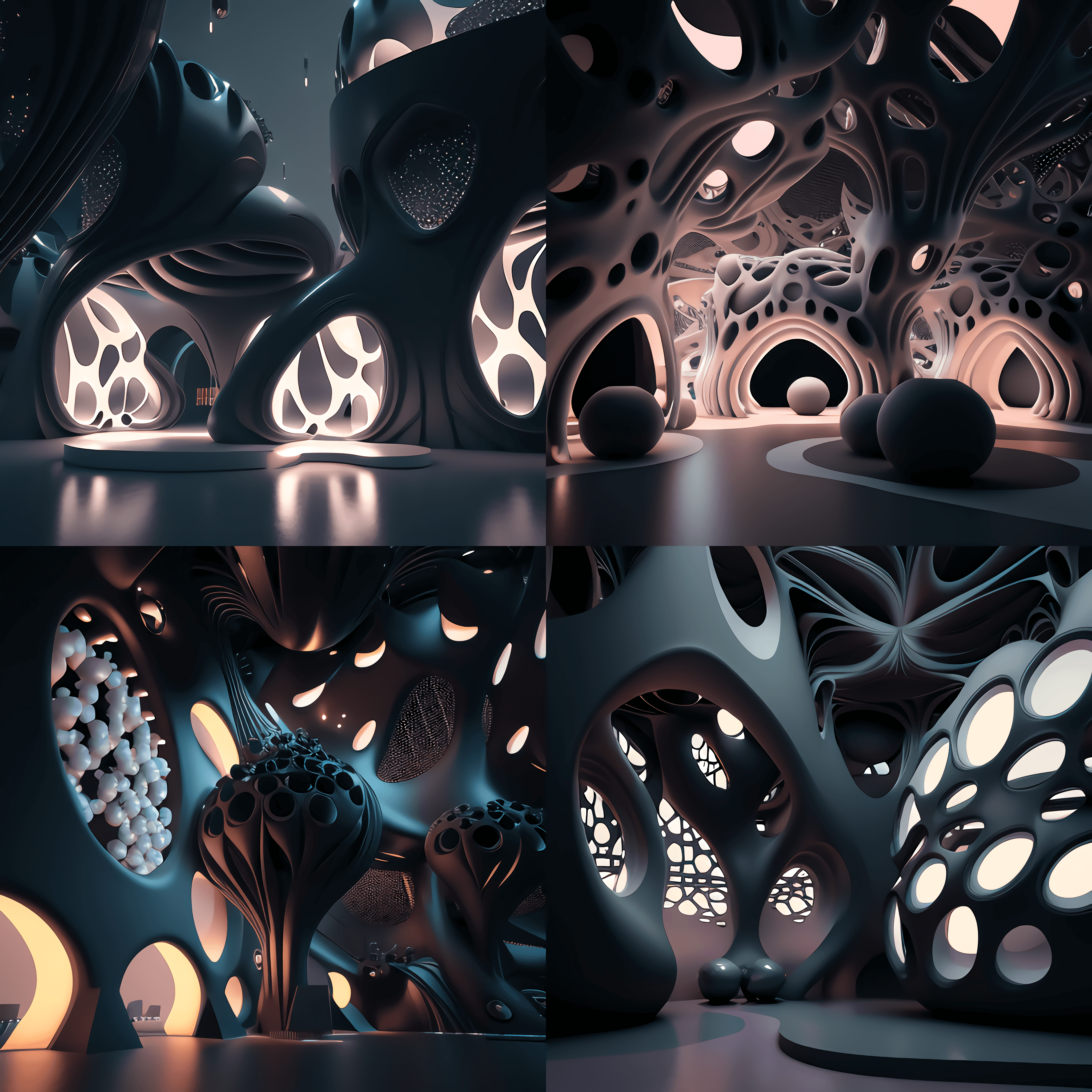 Imaginary interior spaces inspired by biomimicry, natural organic formations and living colonies of microorganisms