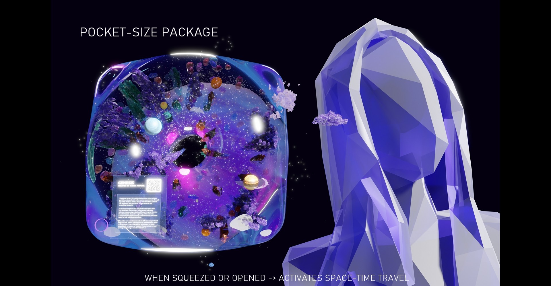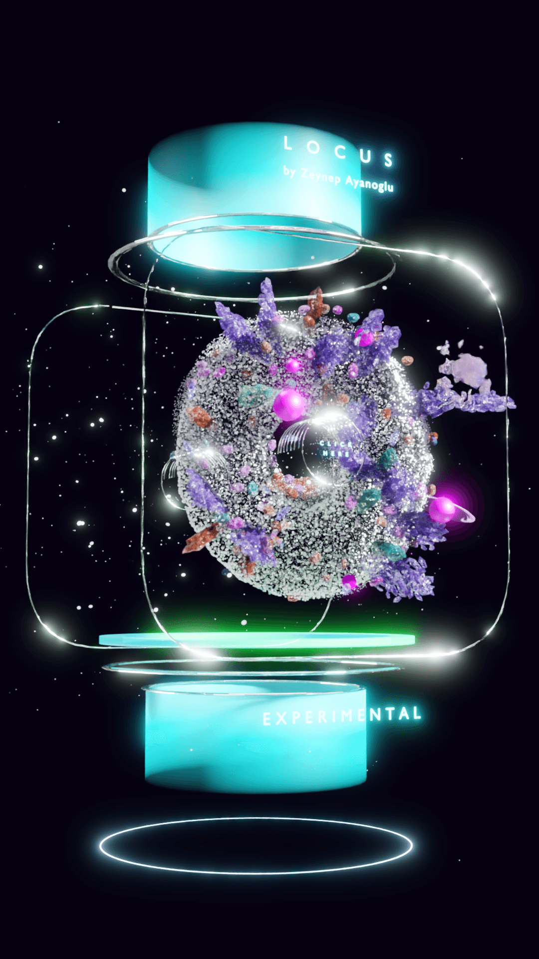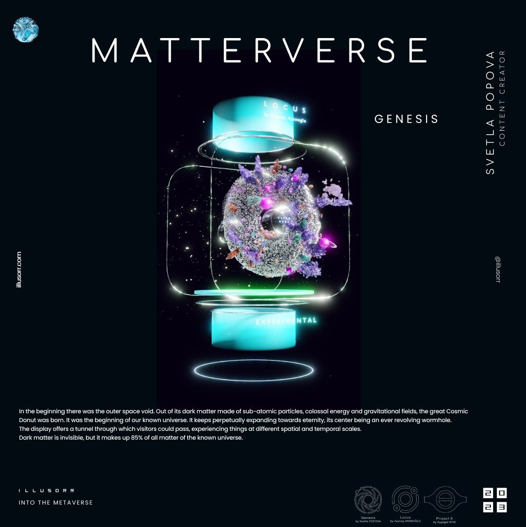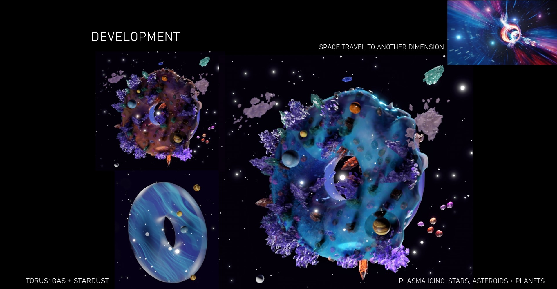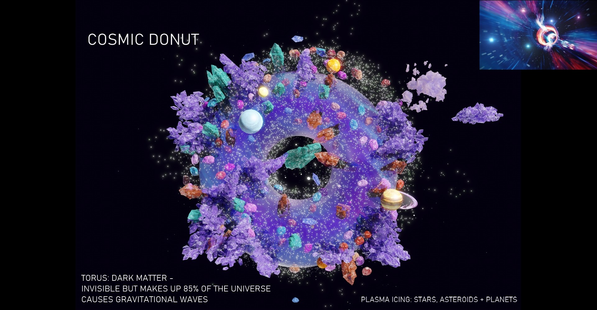 A space donut portal, which teleports virtual visitors to different experiential places in the universe