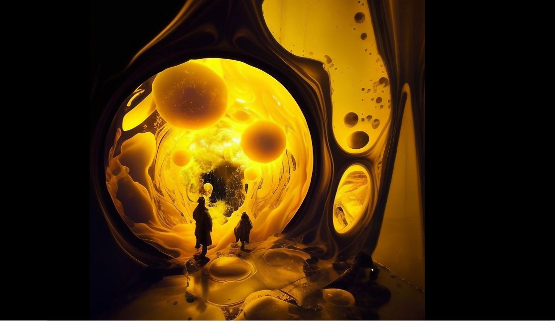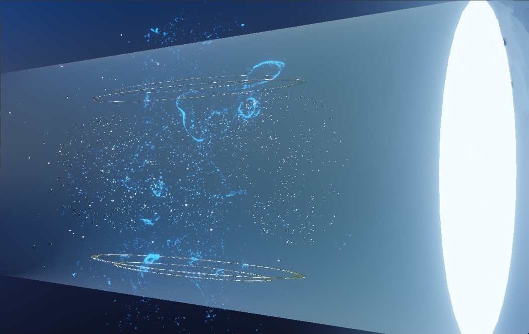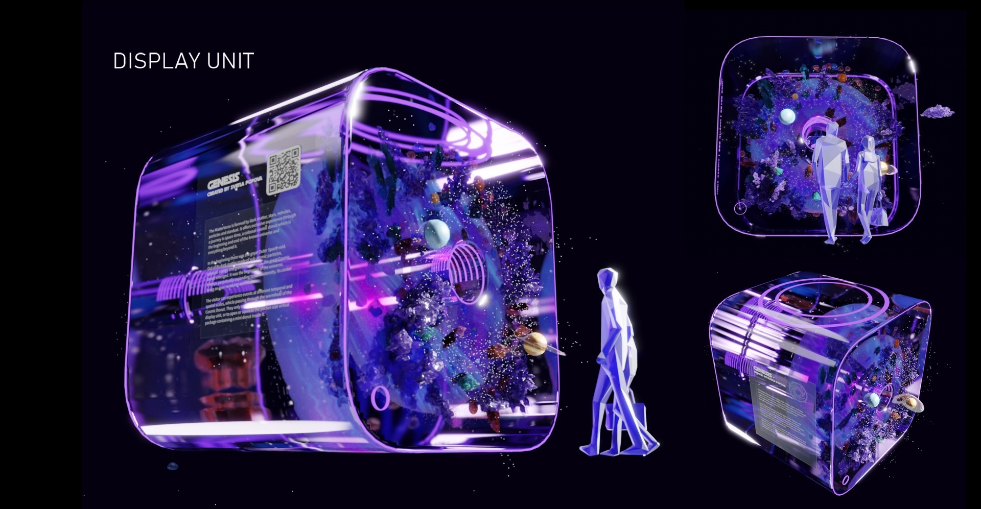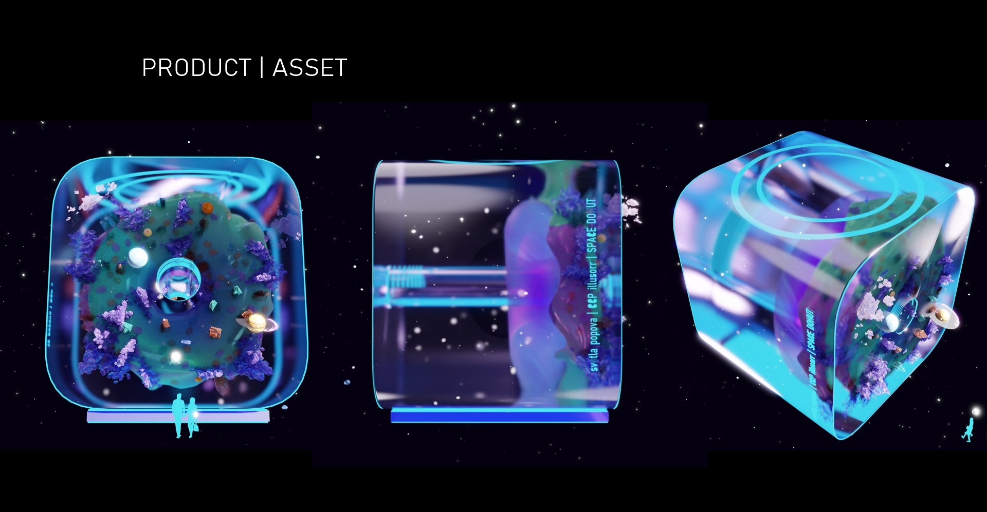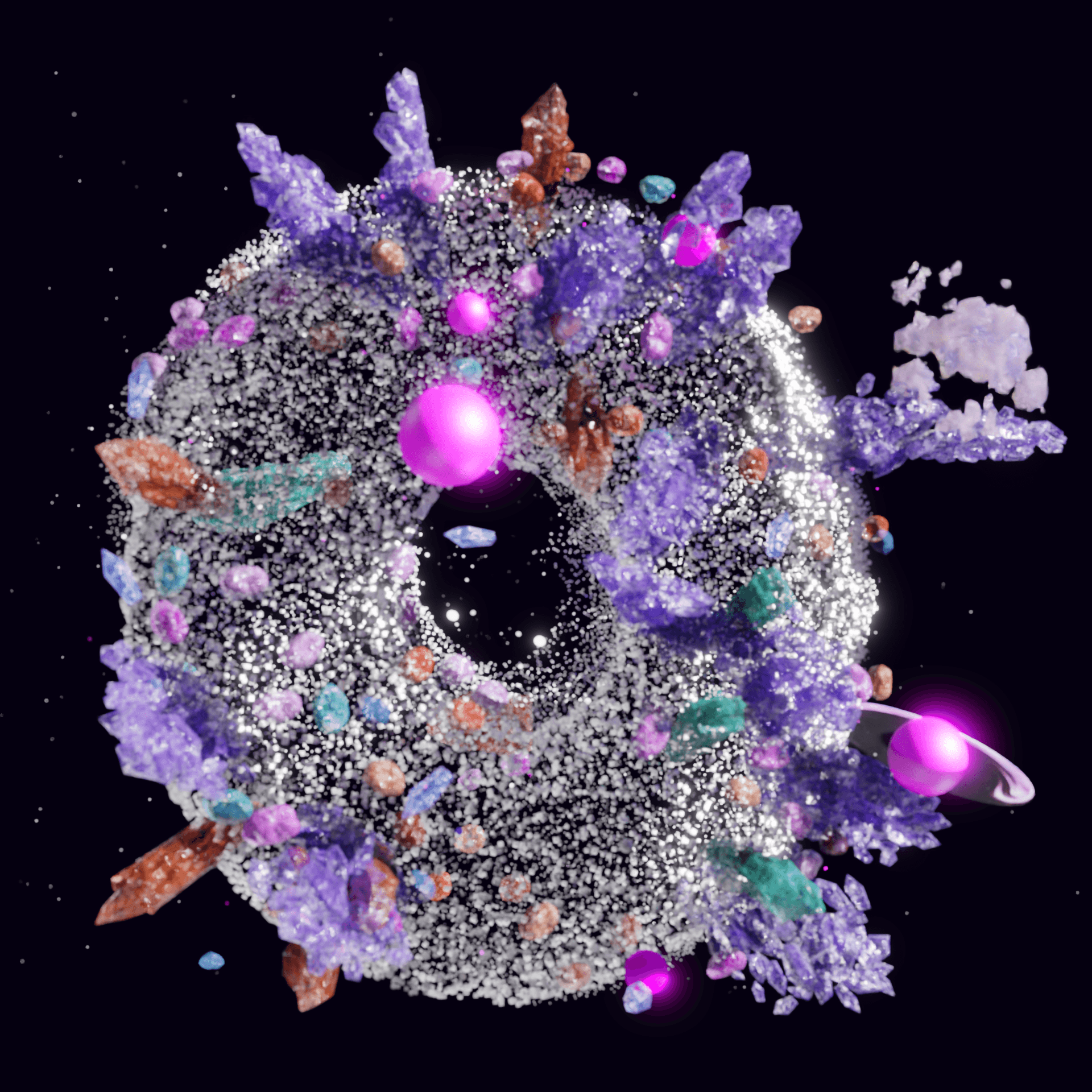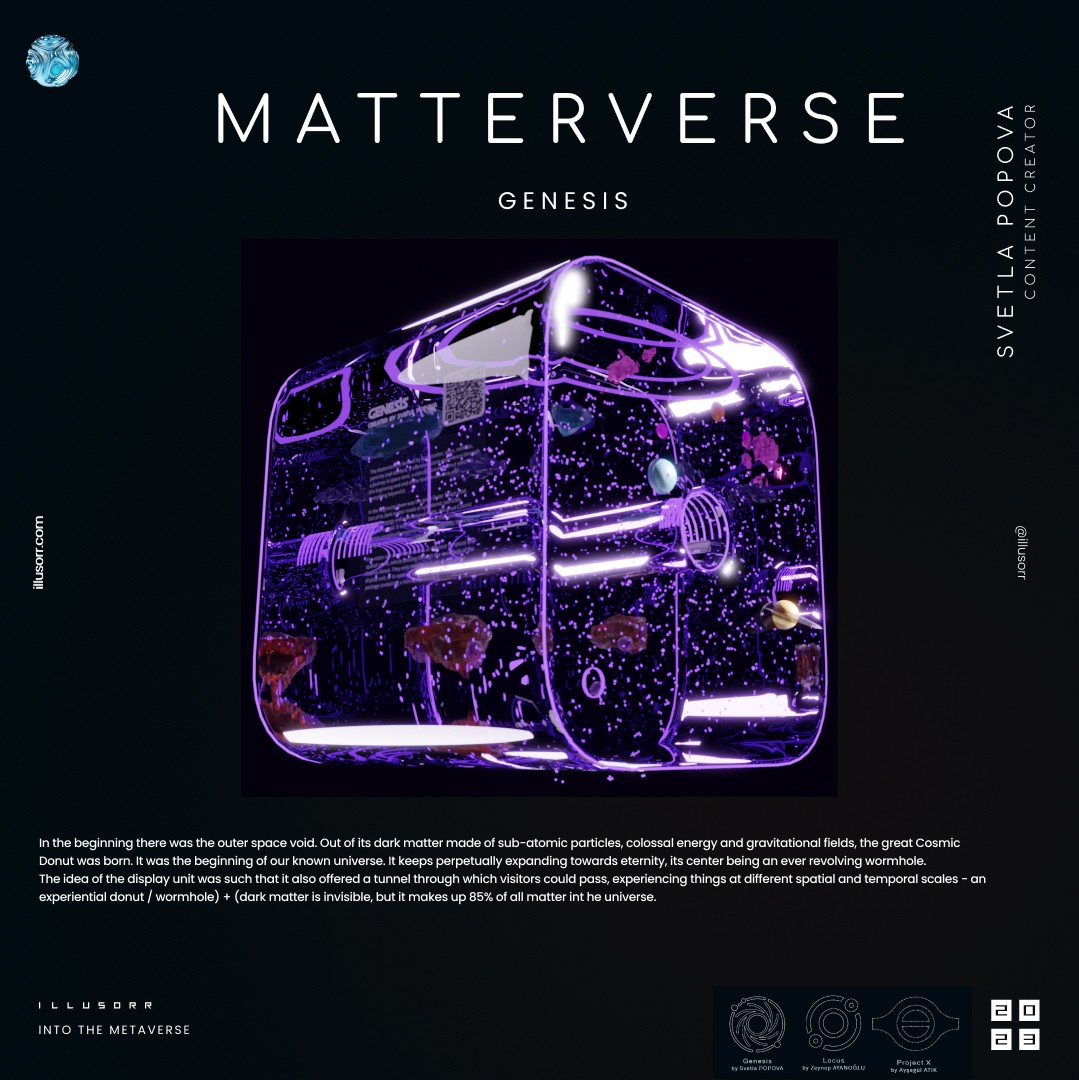 A space donut portal, which teleports virtual visitors to different experiential places in the universe