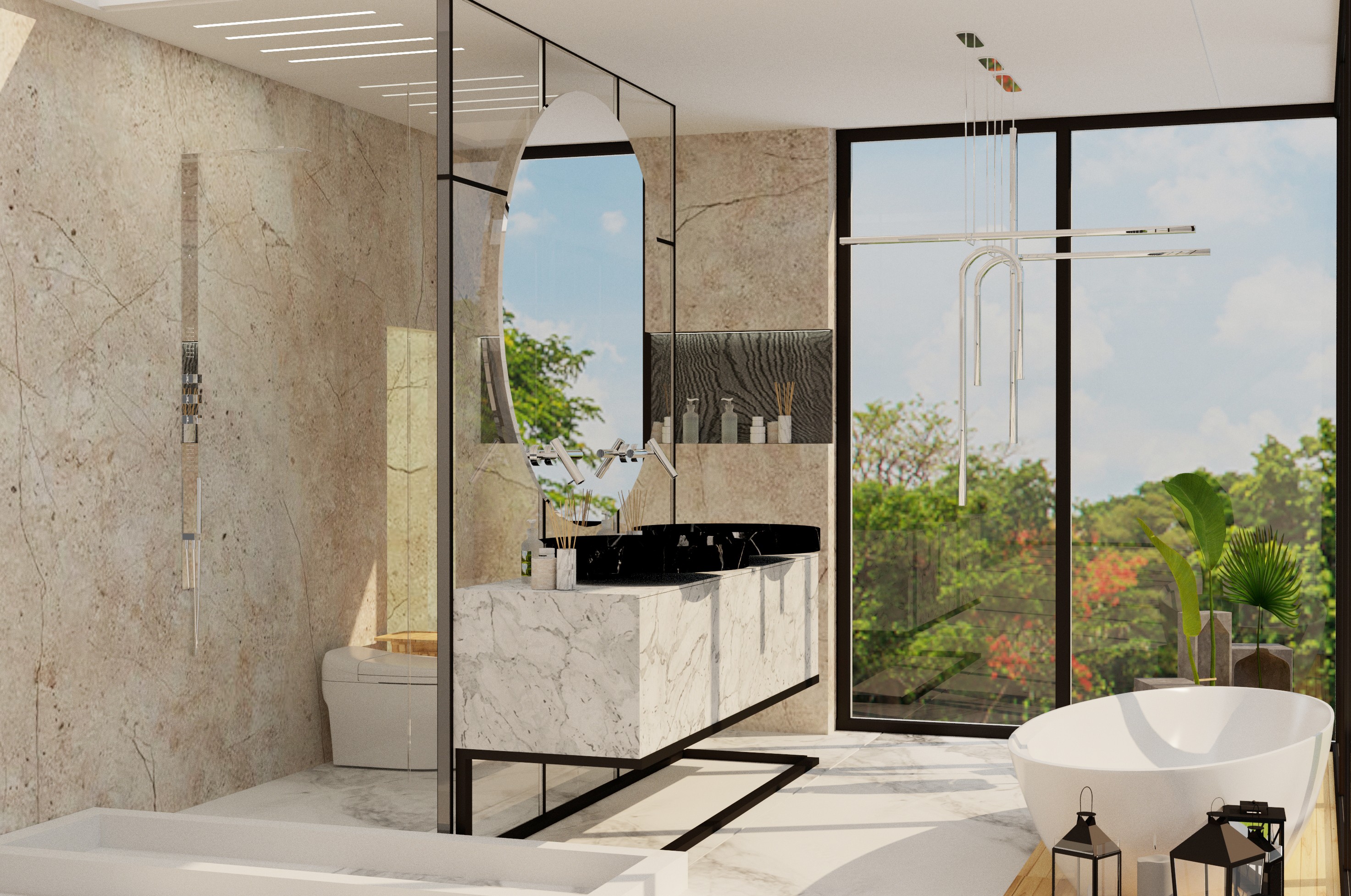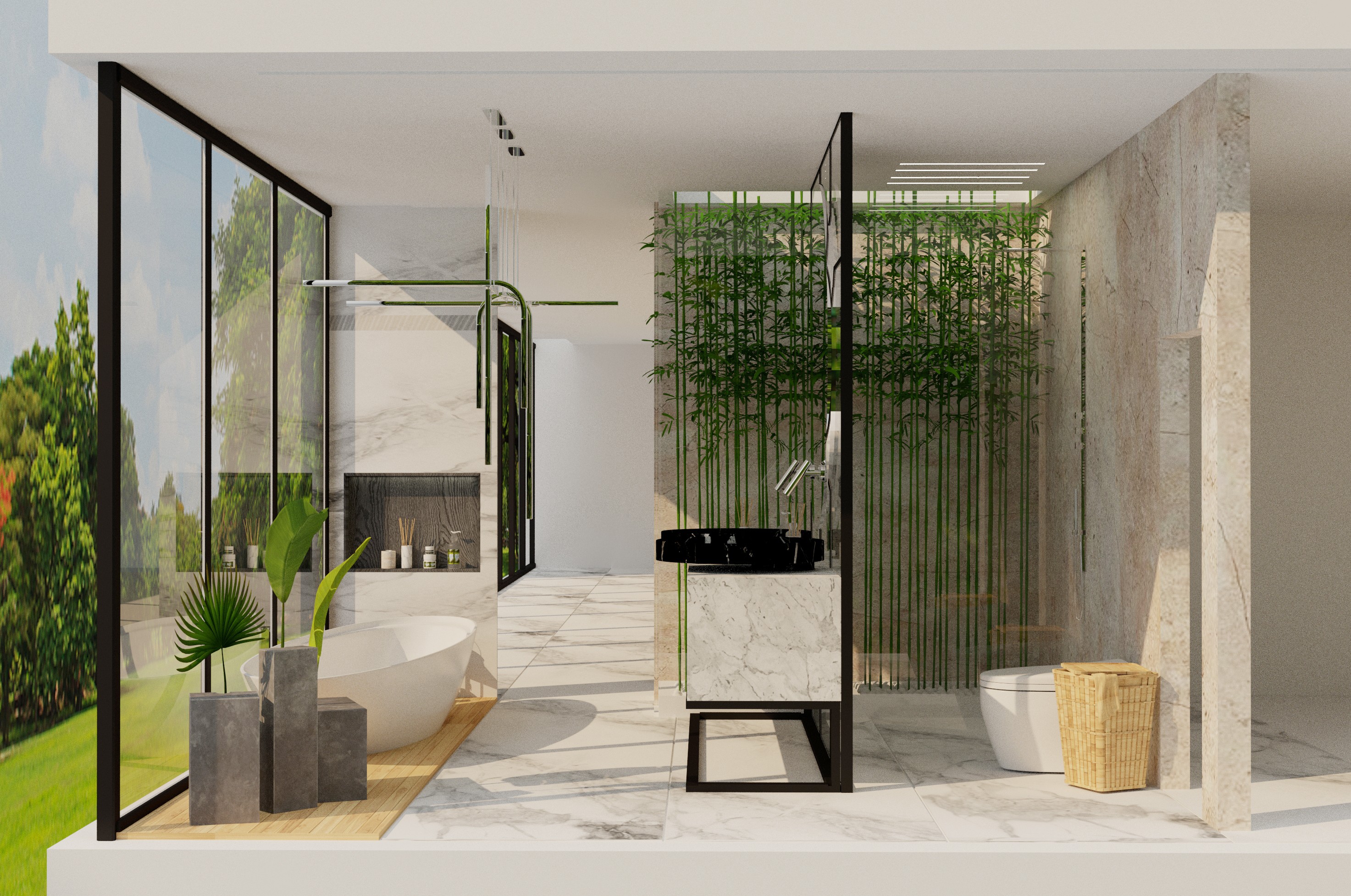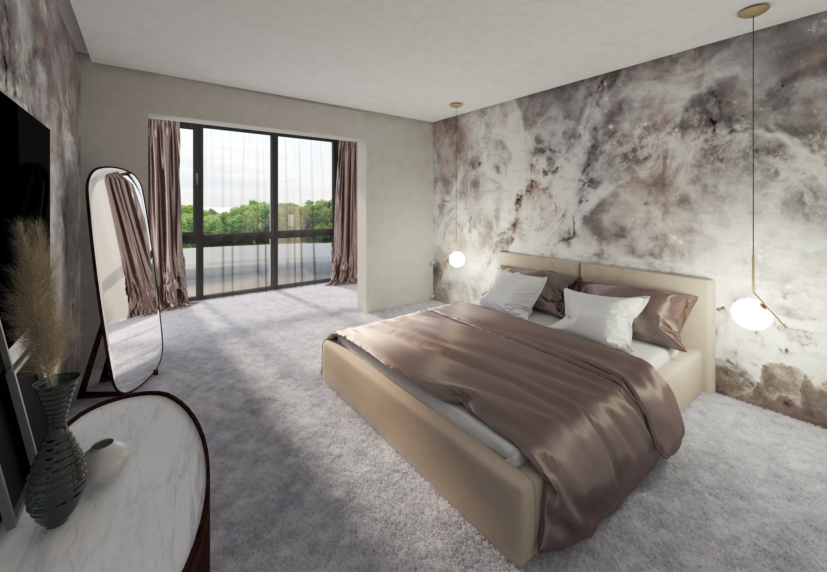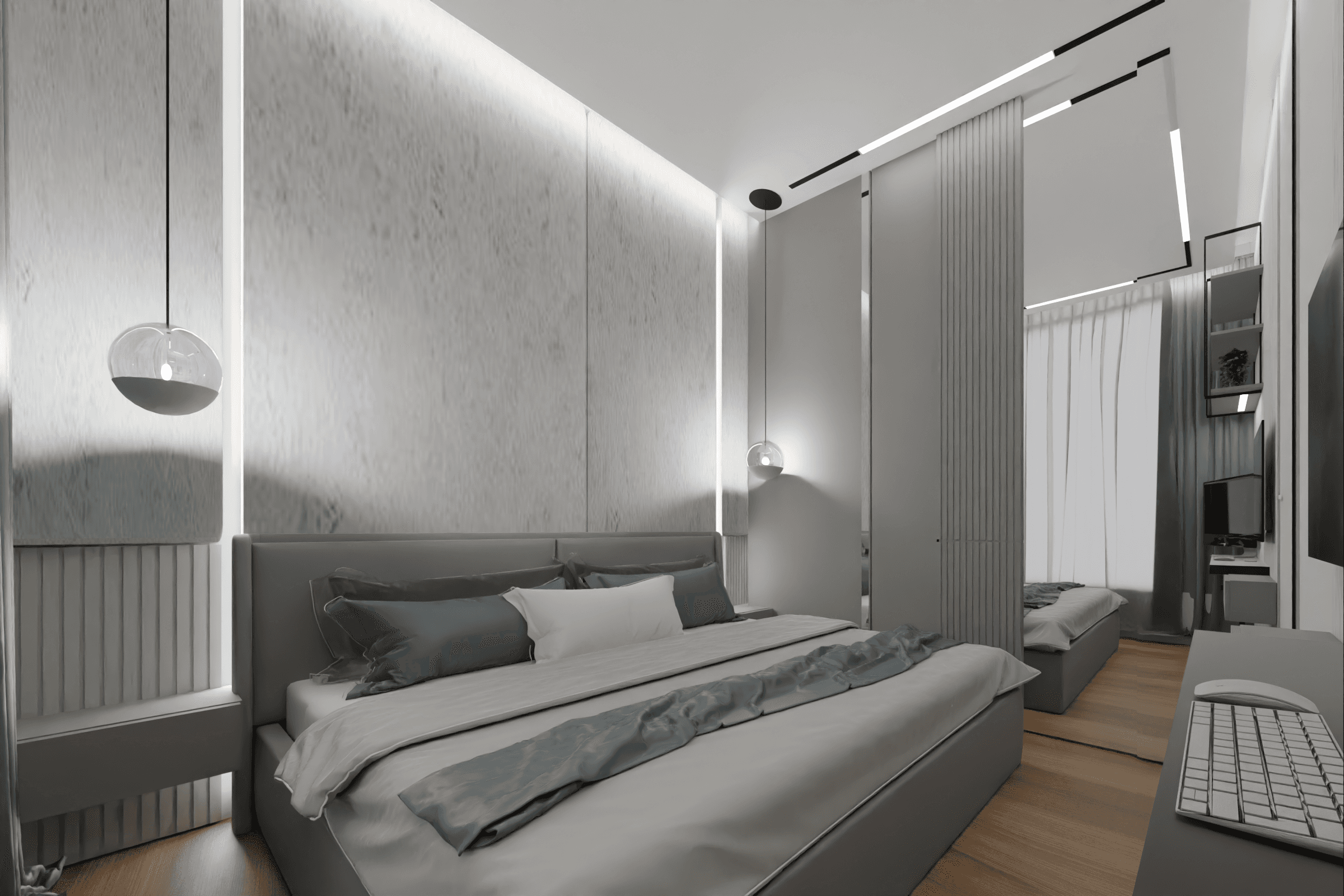 A minimalist apartment interior design using luxury materials and fully bespoke furniture.