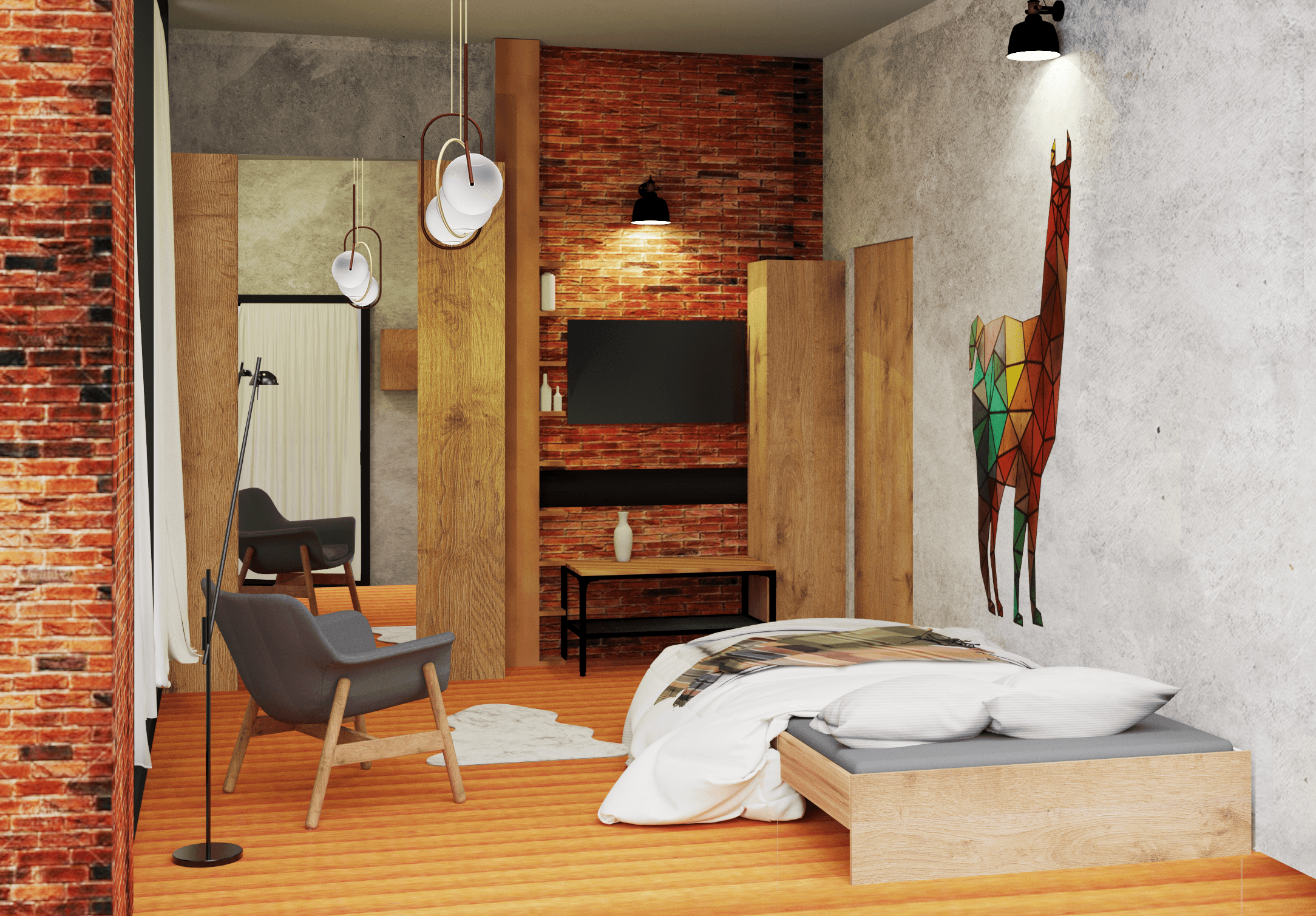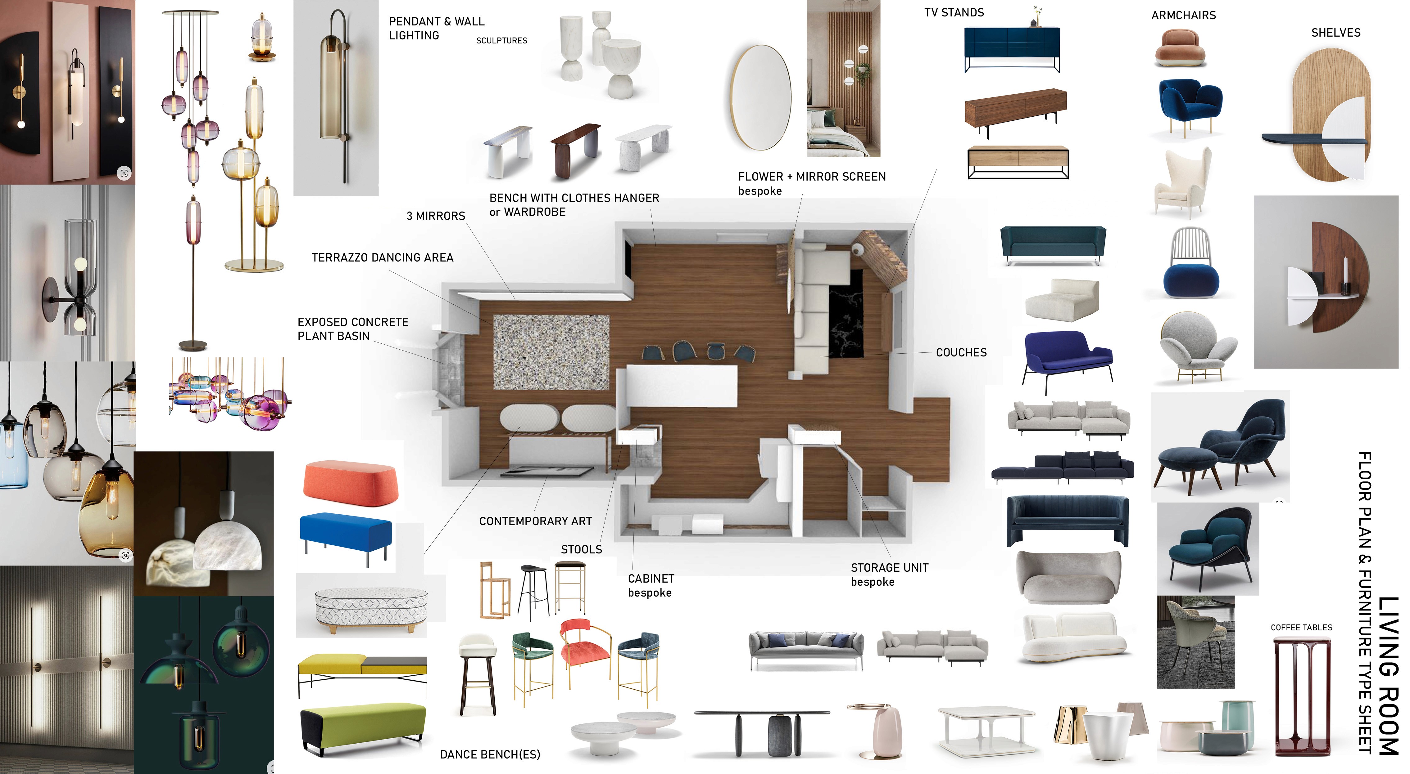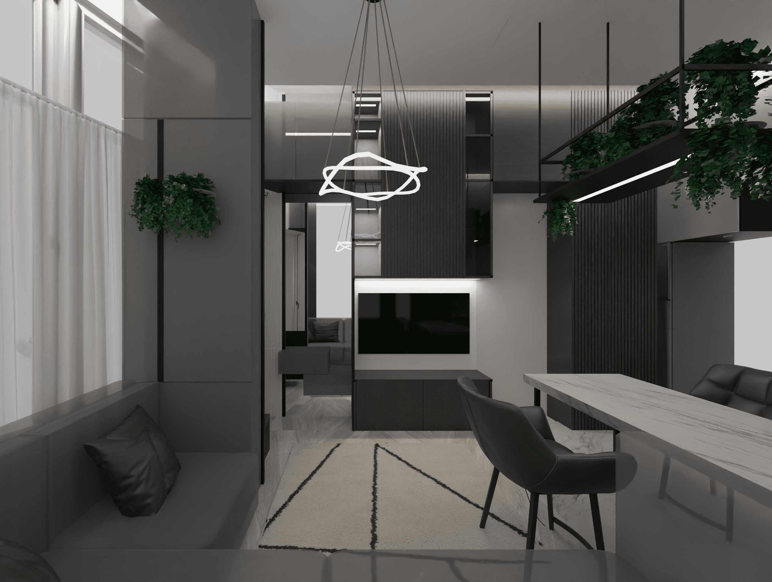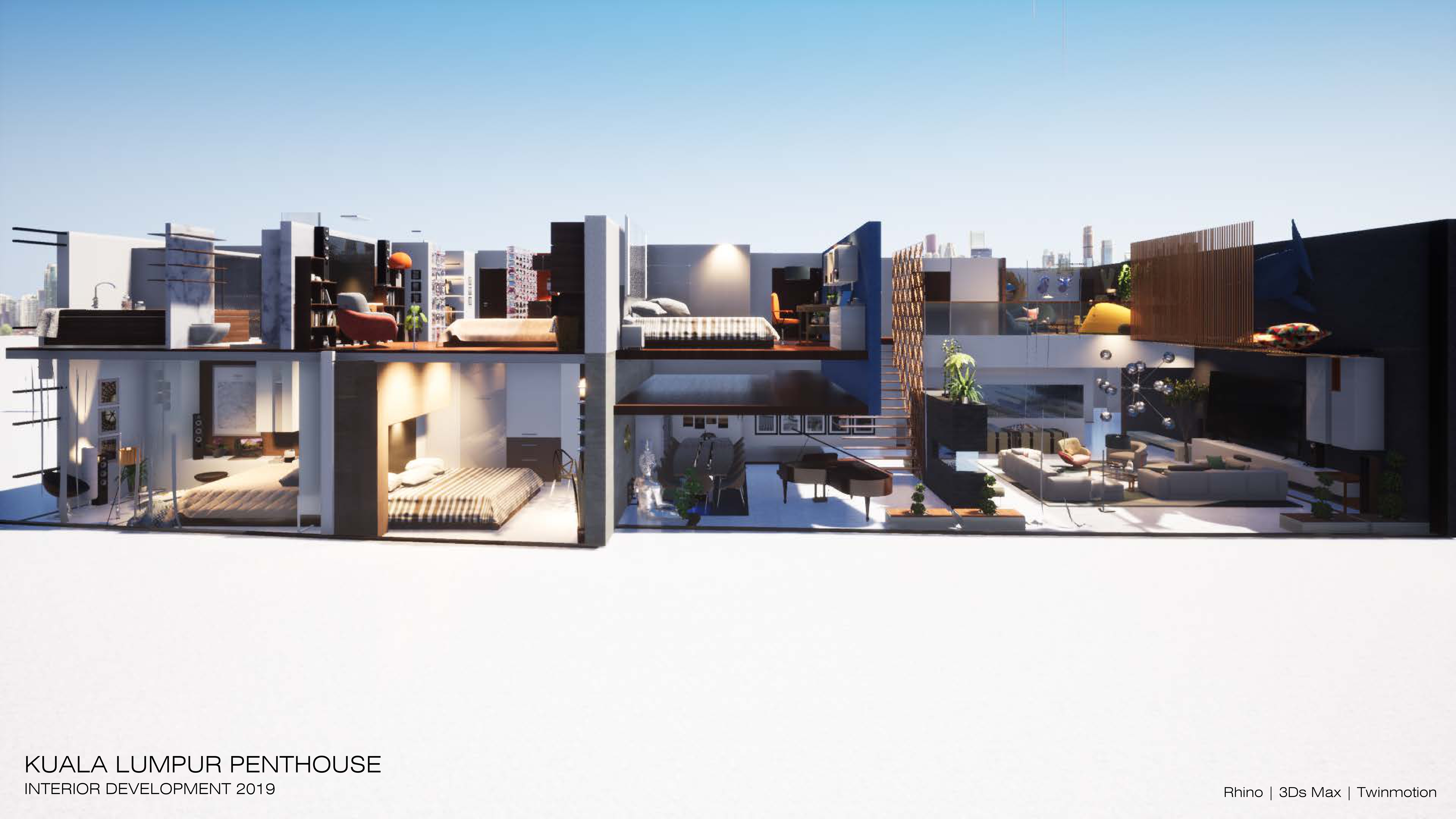 An interior design project for an open plan mezzanine apartment loft in Malaysia.