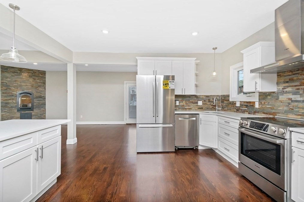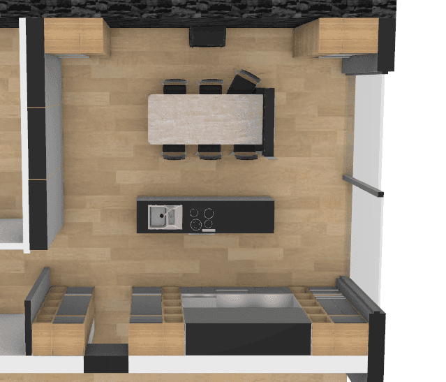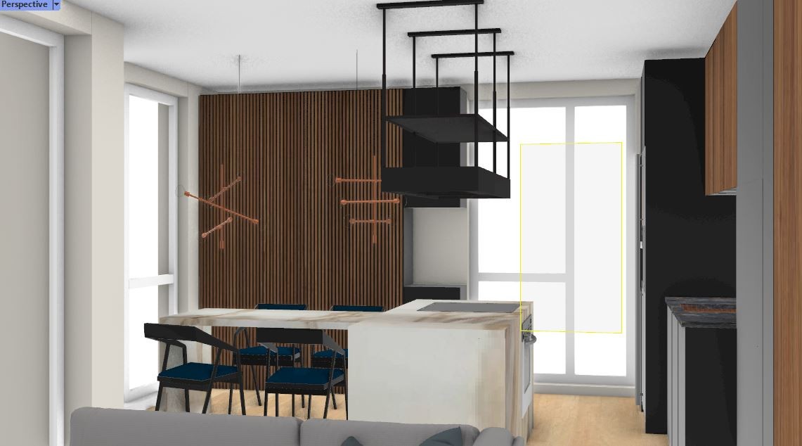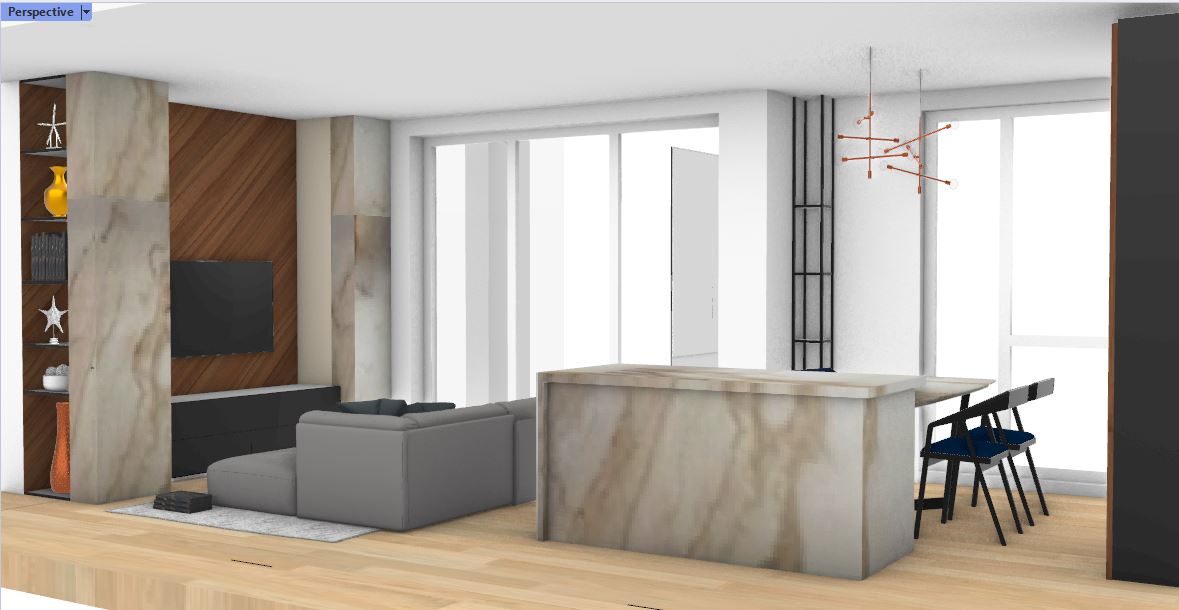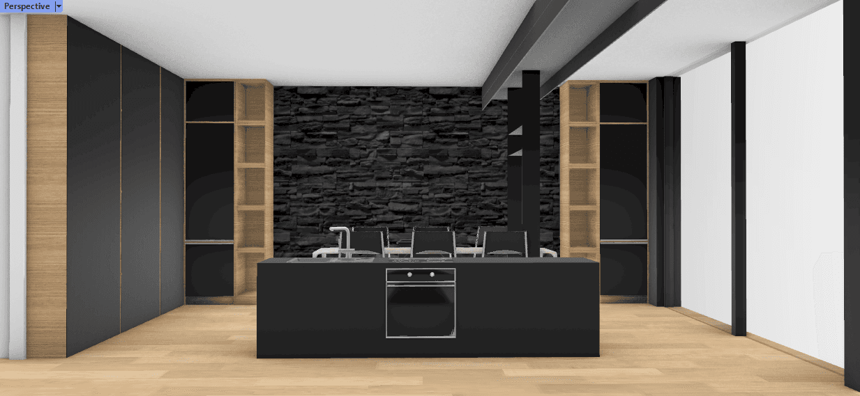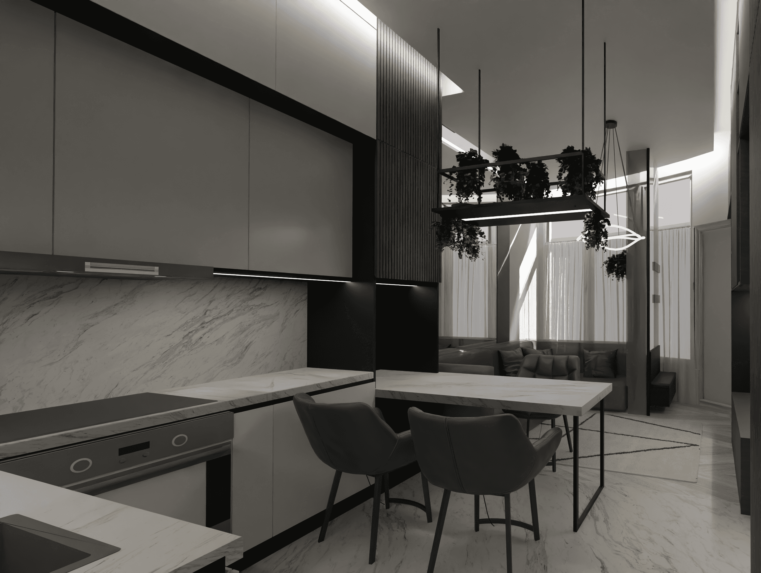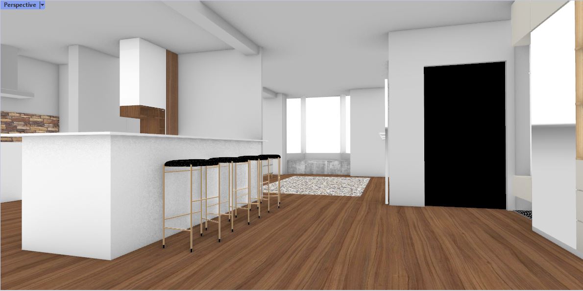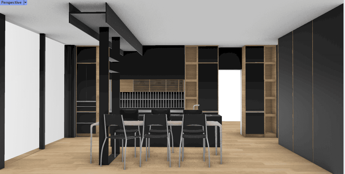 An interior design project for an open plan contemporary kitchen and apartment inspired by Manhattan industrial loft style.