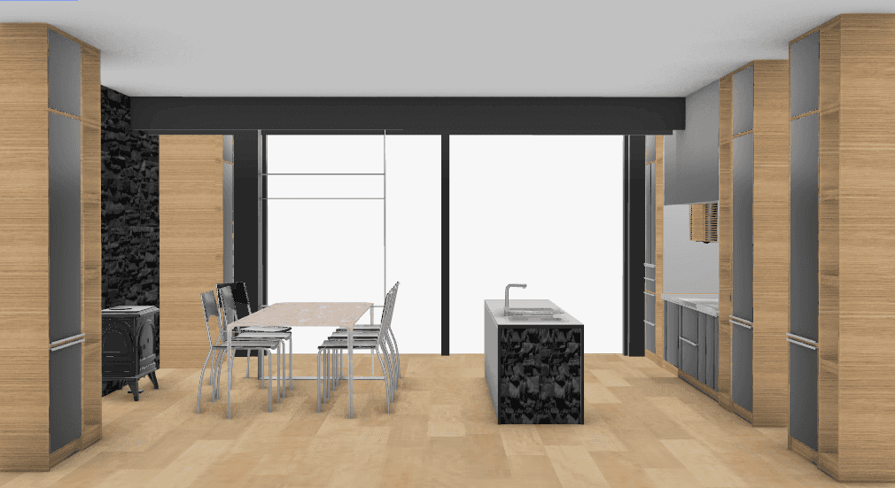 An interior design project for an open plan modernist kitchen and lounge area in the countryside in Ireland. The client is blind.